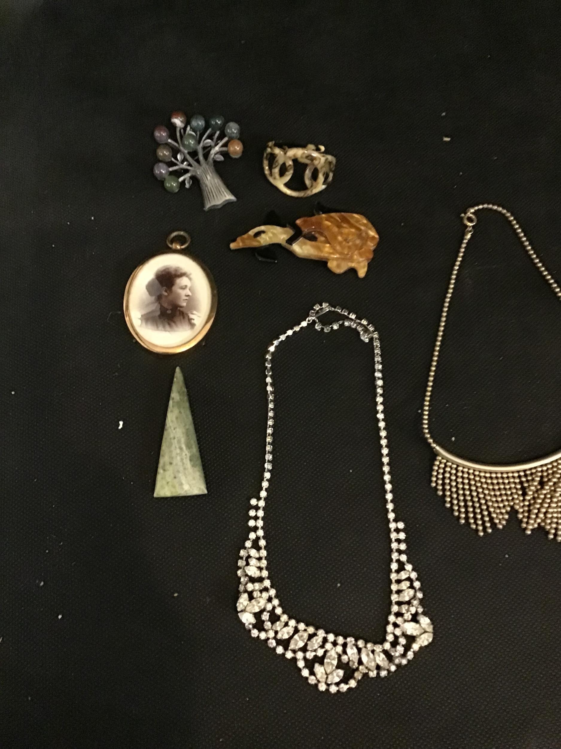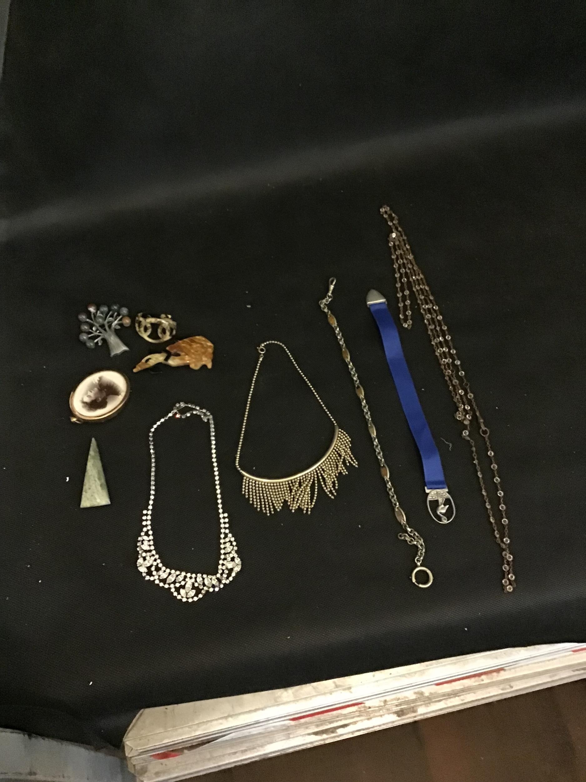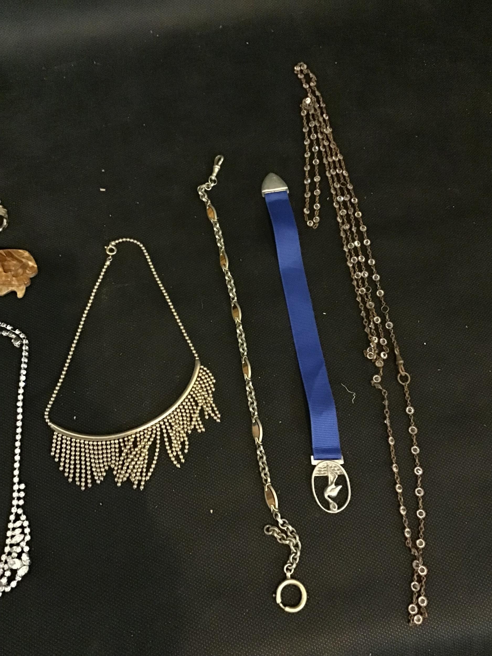 2 BAGS OF ASSORTED JEWELLERY WATCH CHAIN NECKLACES AND BOOK MARK ETC