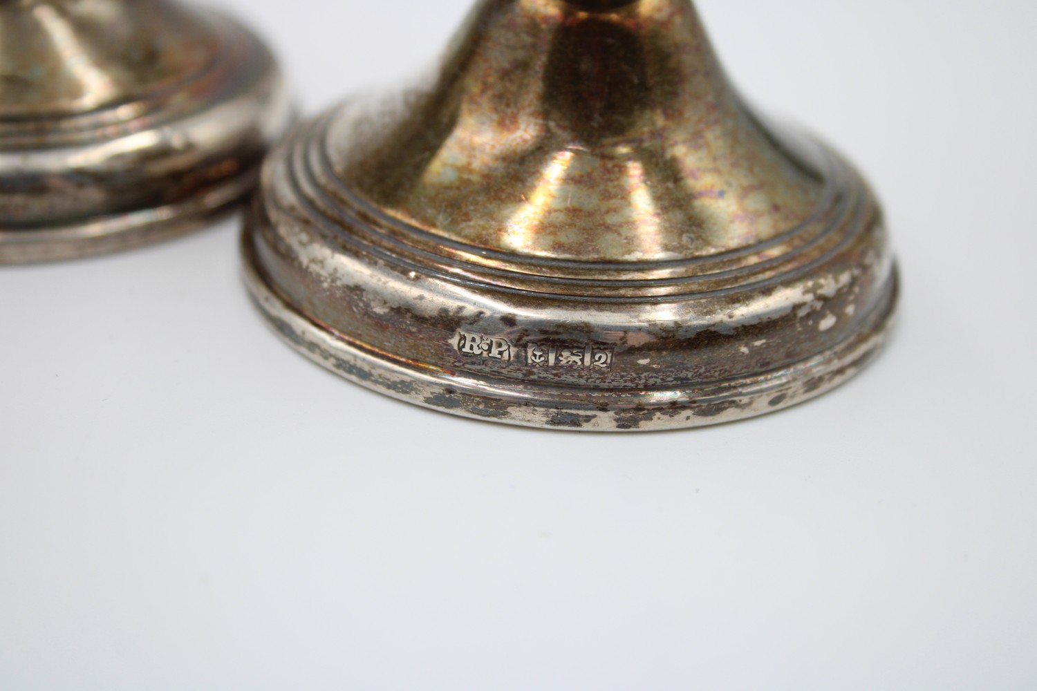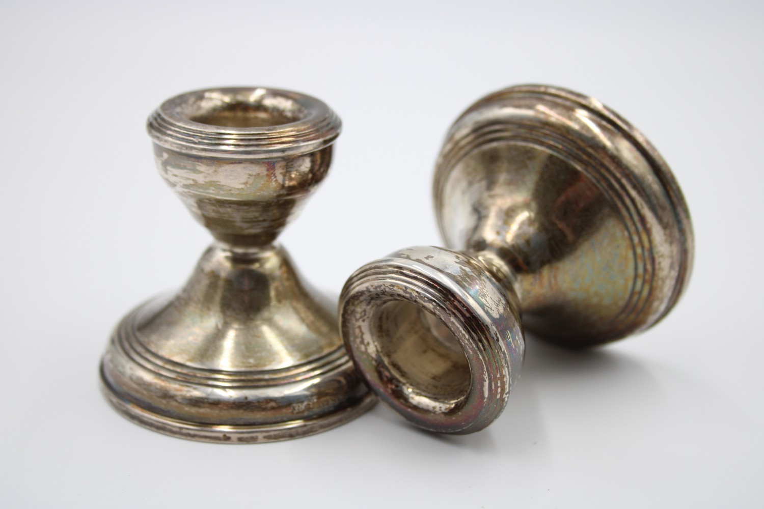 Pair of Vintage 1965 Birmingham STERLING SILVER Filled Squat Candlesticks (200g)