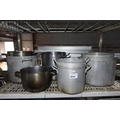 A quantity of various large aluminium and stainless steel cooking pots, contents of 1 shelf