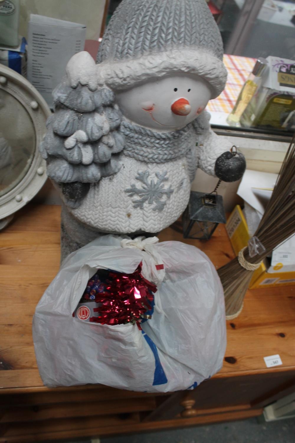 HEAVY FREE STANDING SNOWMAN HOLDING LANTERN AND XMAS LIGHTS