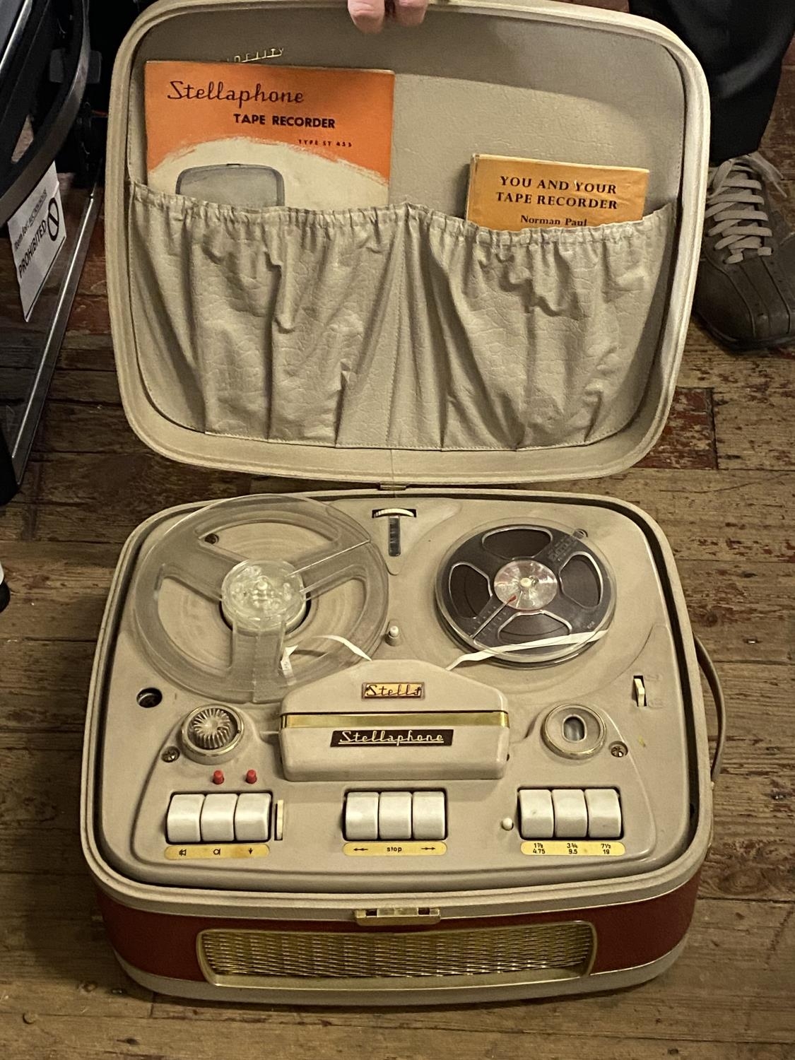 A vintage Stellafone reel to reel tape player (untested), shipping unavailable