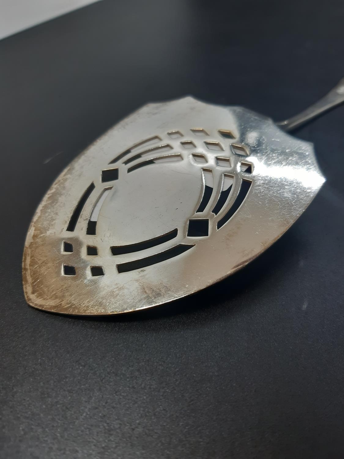 A hallmarked sterling 925 silver pie server with monogrammed “M” top - total approx. weight 96 grams