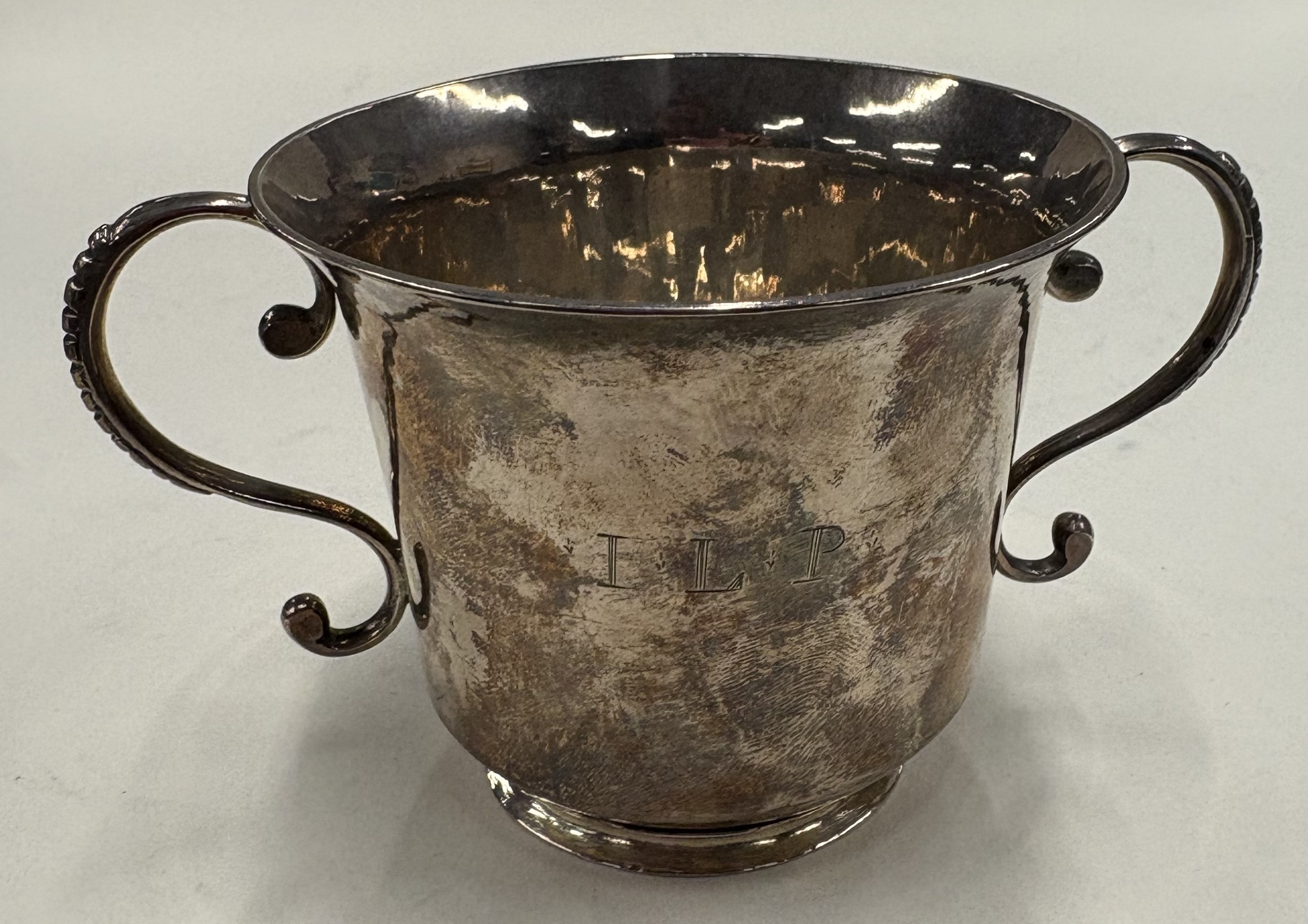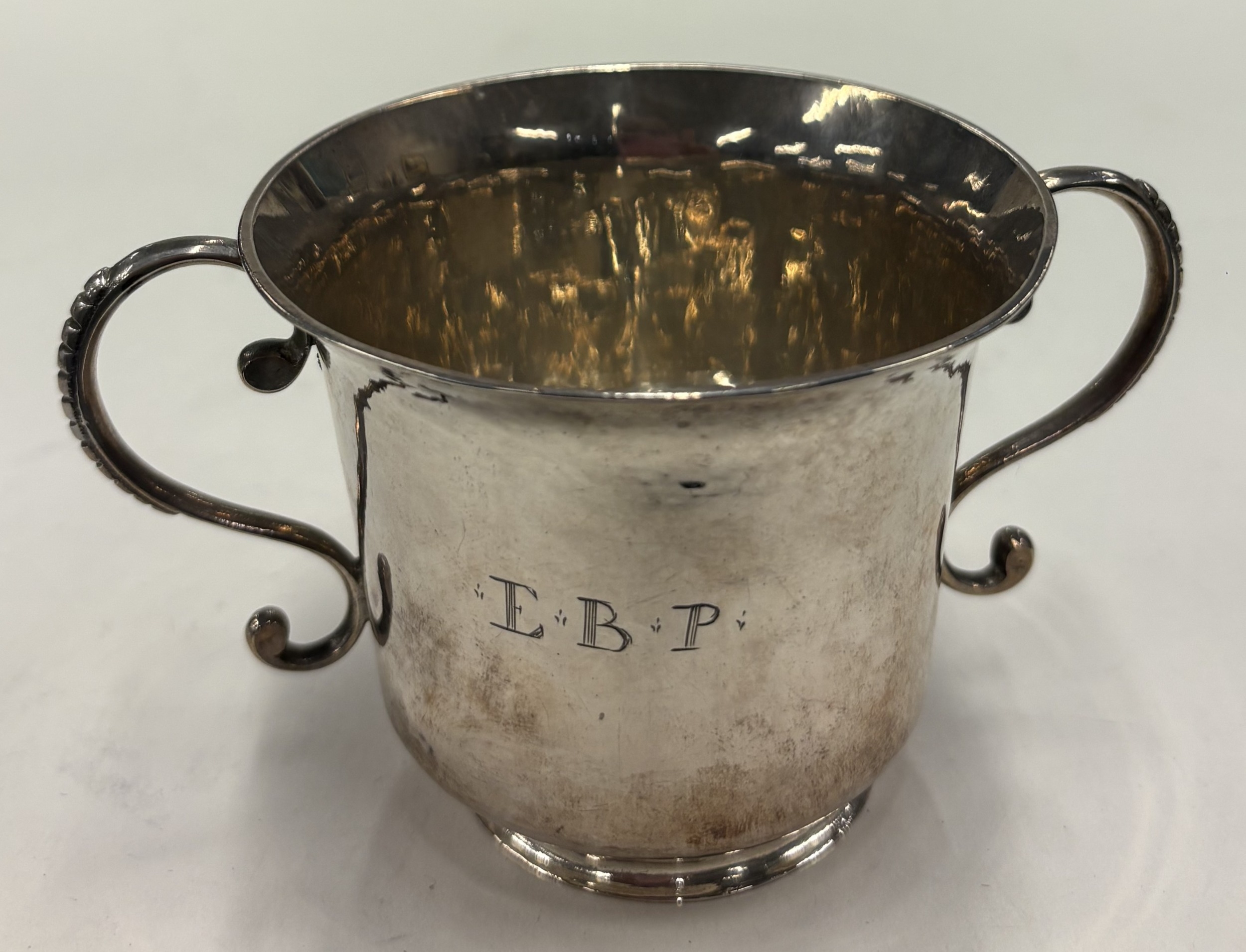 A Channel Islands George I silver porringer, maker's mark only to base. Guernsey, circa 1720. By IH. Approx. 101 grams. Est. £500 - £800.