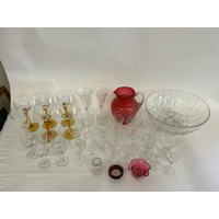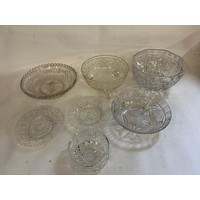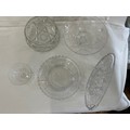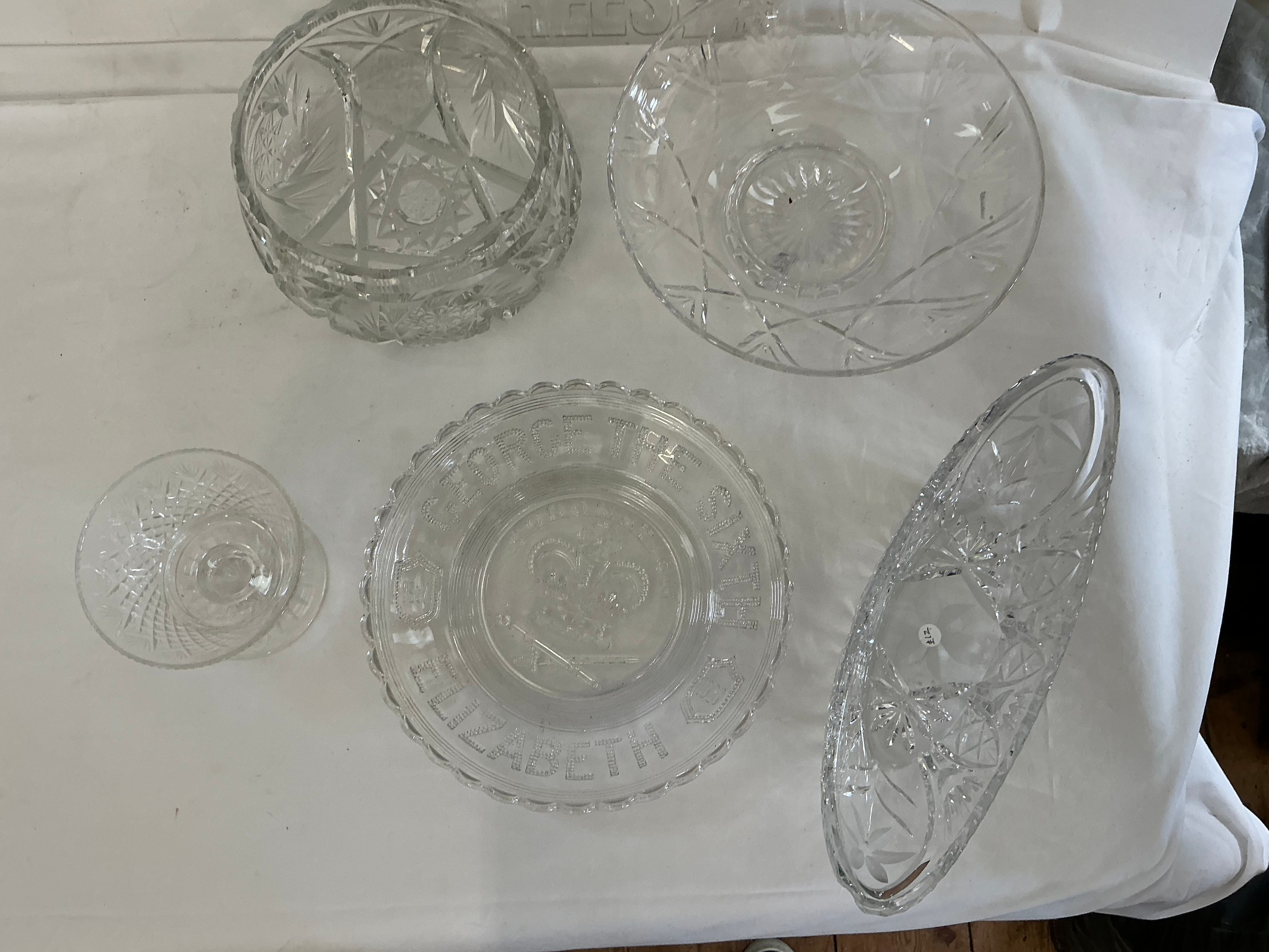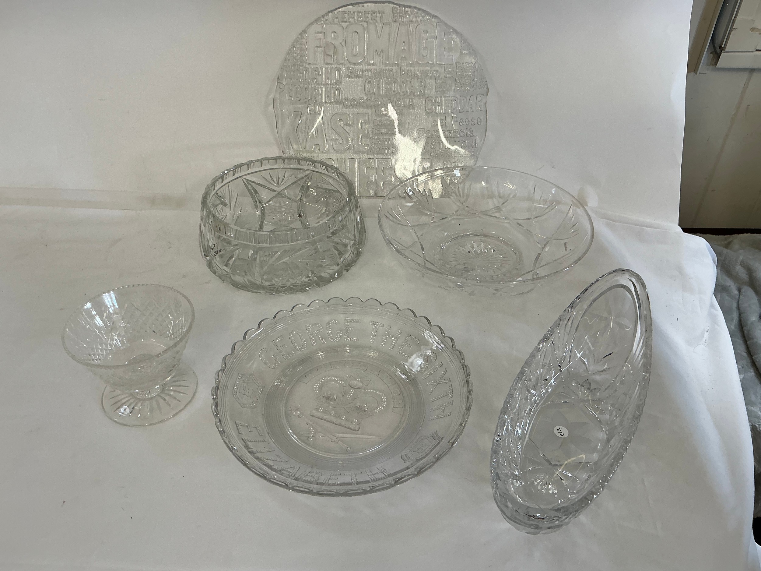 A George VI Pressed Glass Dish, a Boat Shaped Dish, Trifle & Cheese Dishes, etc.