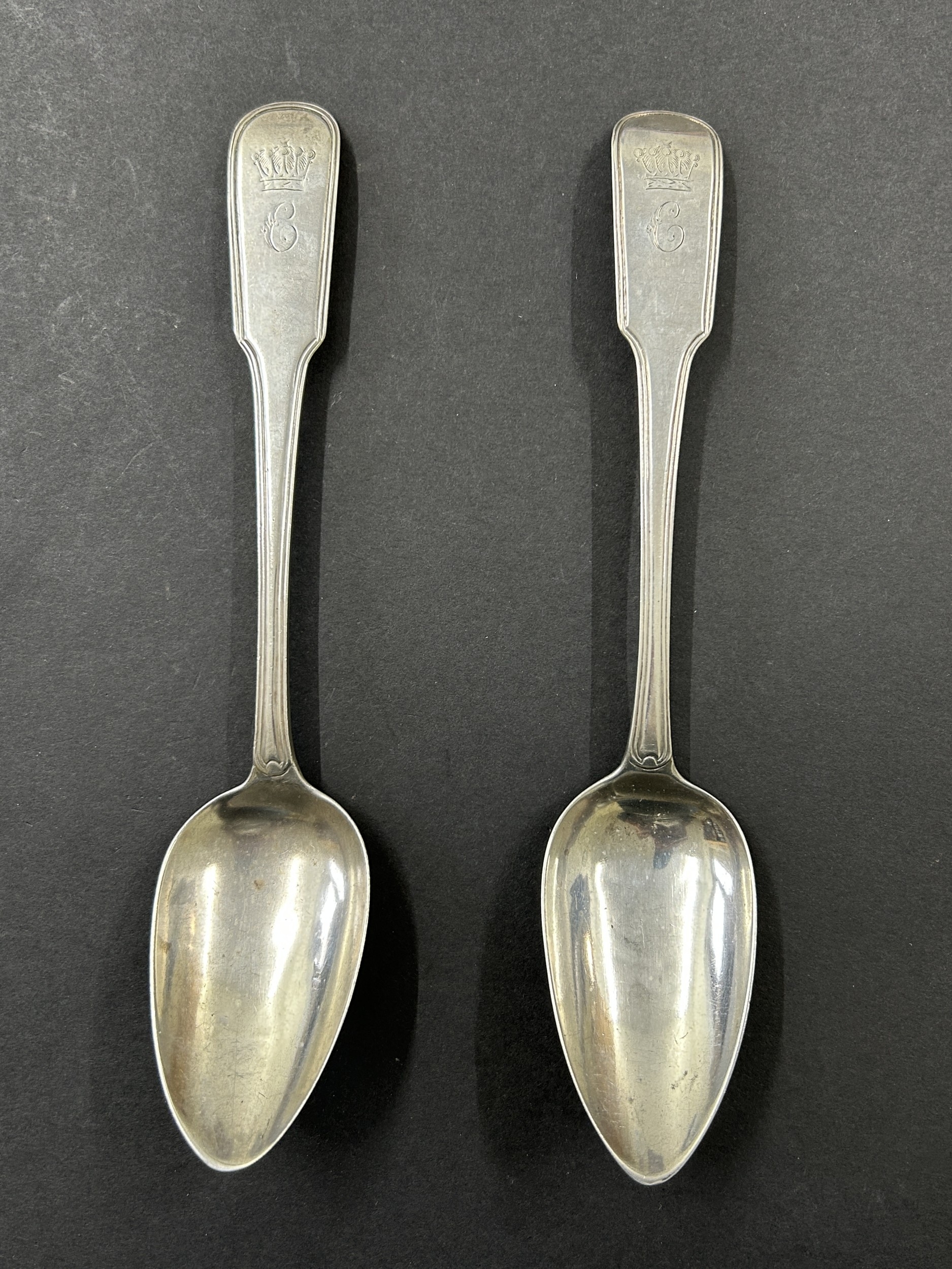 A pair of Georgian Edinburgh silver table spoons, weight approx. 125g