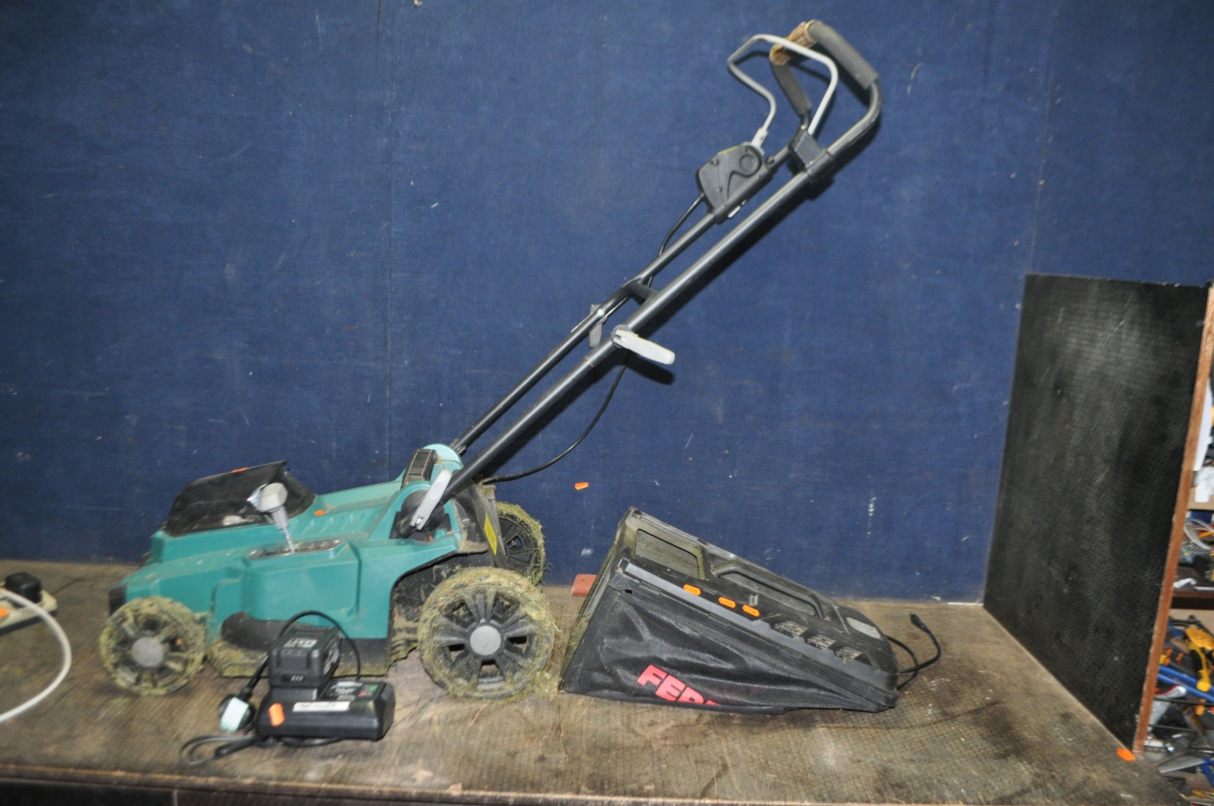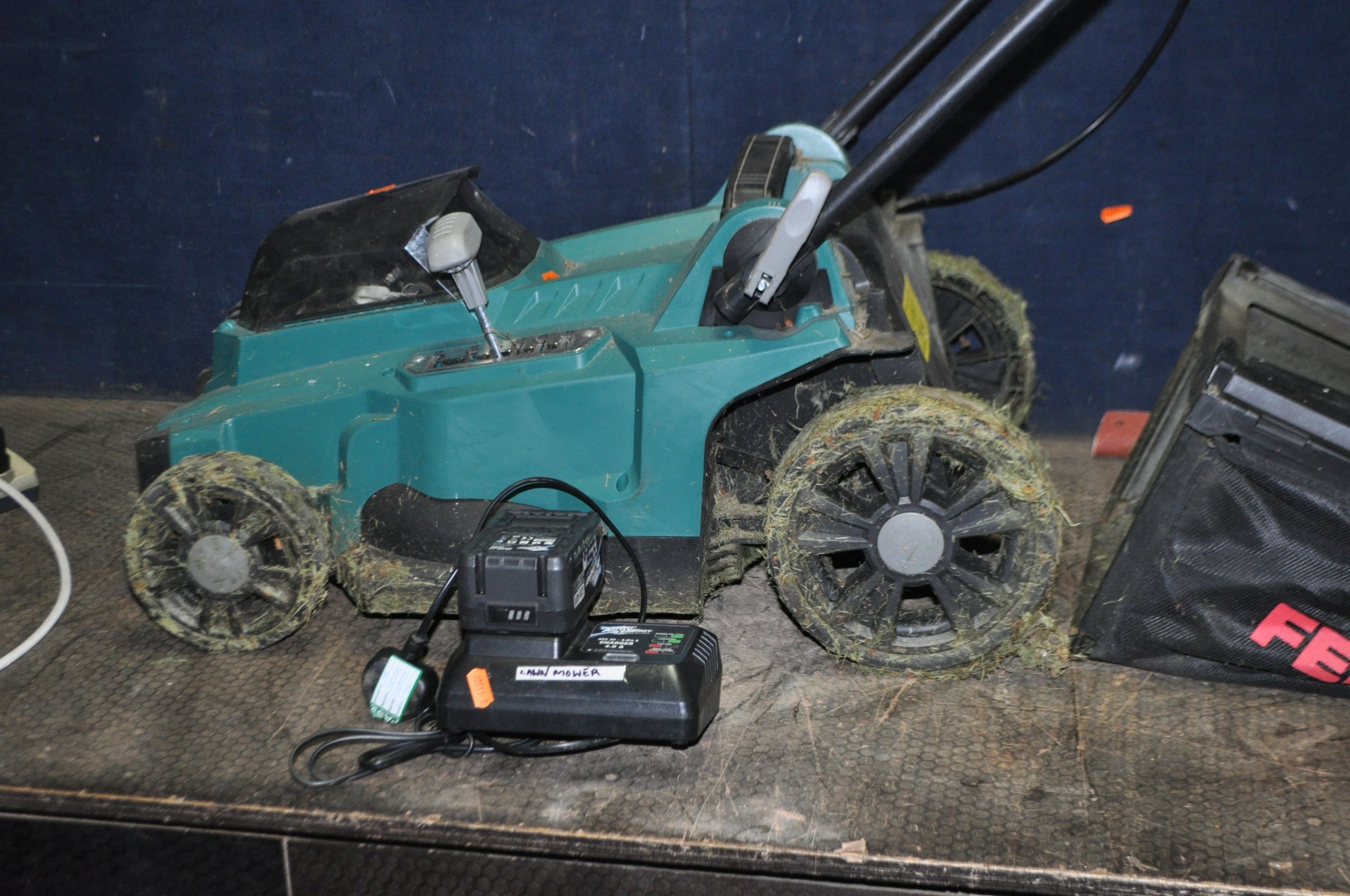 A FERREX FS-ARM4037 CORDLESS LAWN MOWER with one battery, charger and grass box (PAT pass and working)