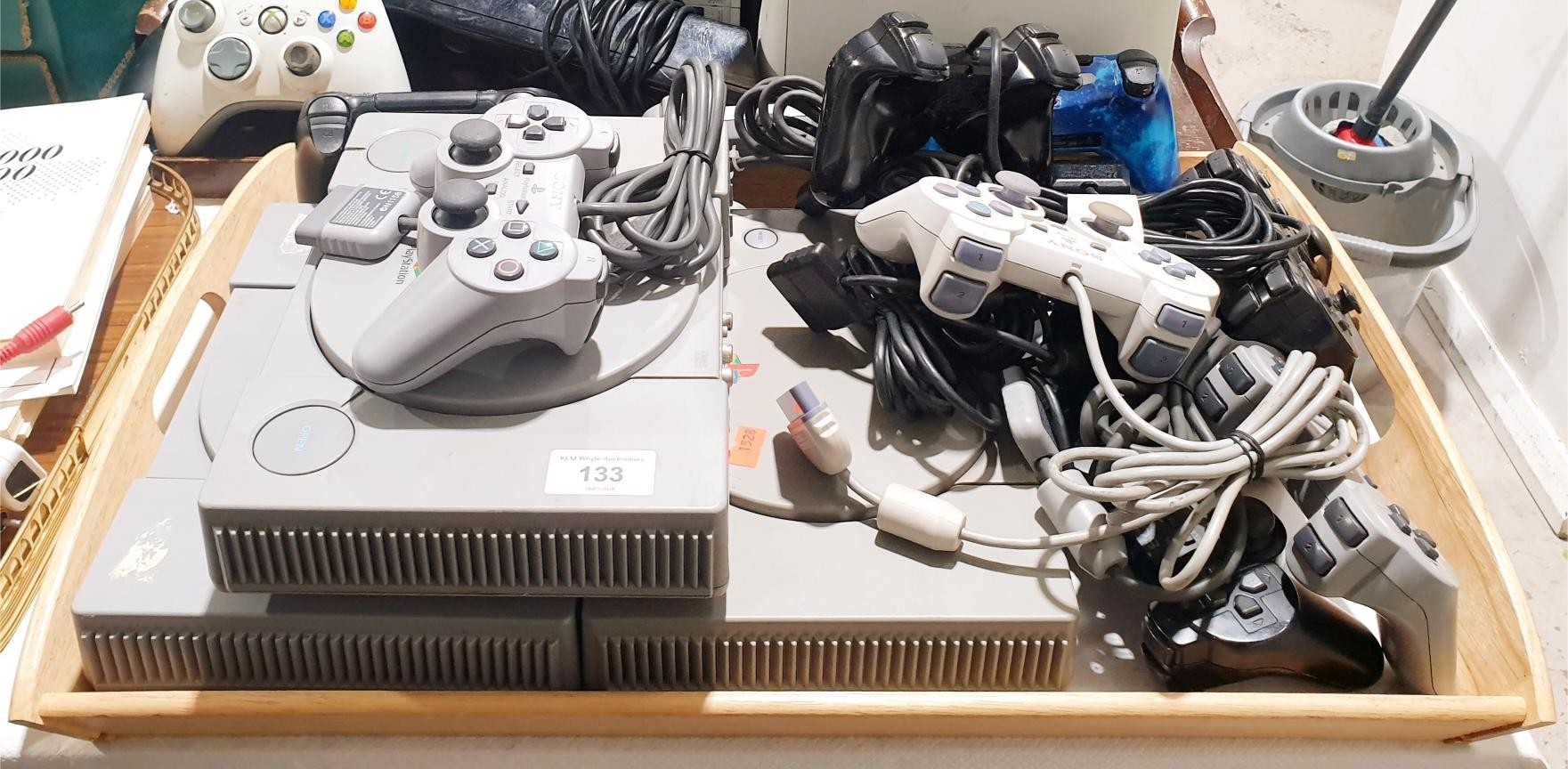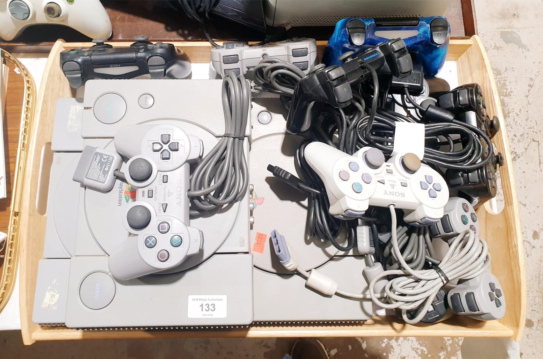 Three Playstation 1 consoles and controllers. No shipping. Arrange collection or your own packer and shipper, please. Electricals are sold as scrap.