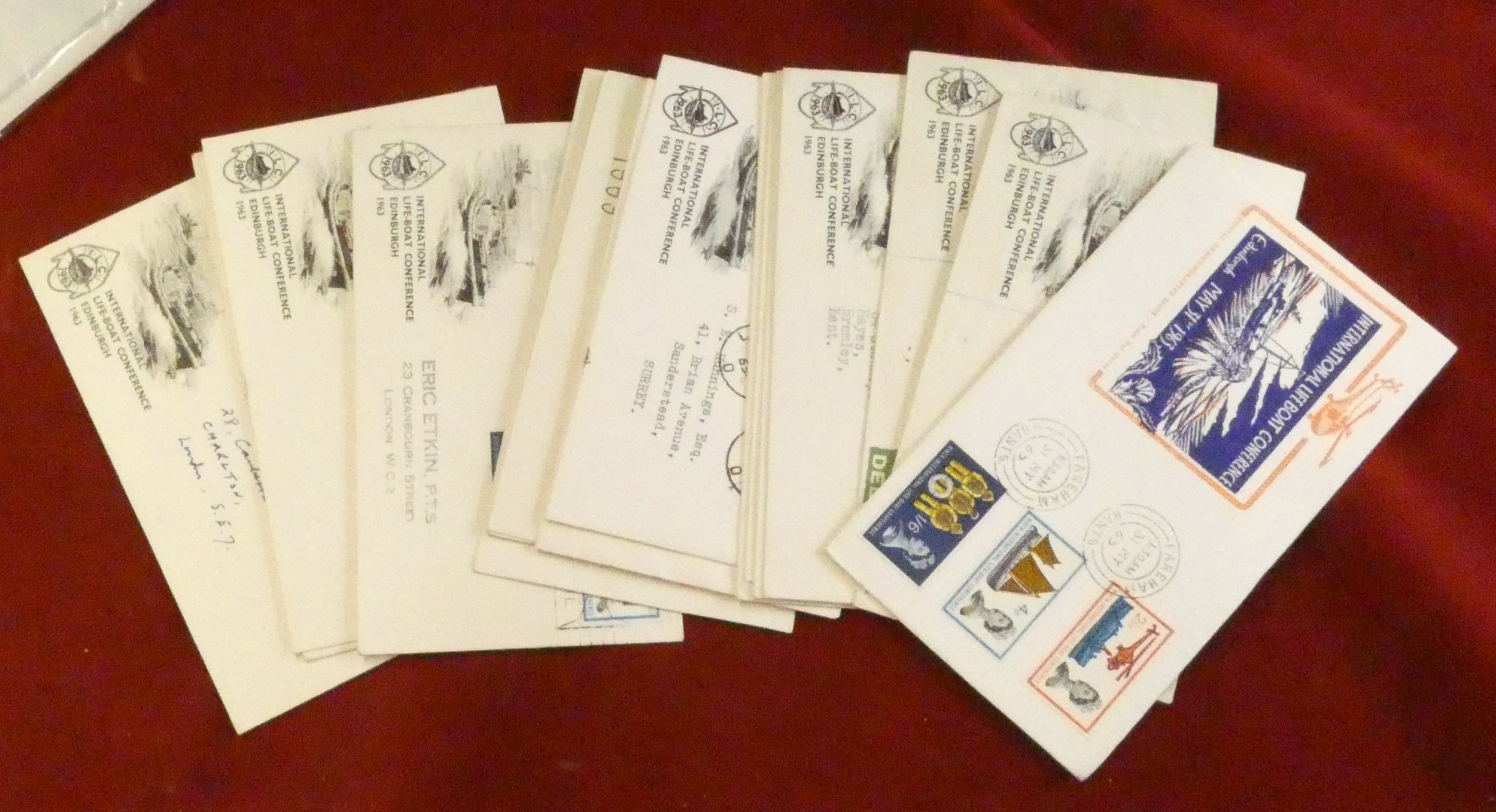 Great Britain 1963 ninth Internationaln Lifeboat Conference 16 FDCs cancelled on SG639-641with a variety of cancels.