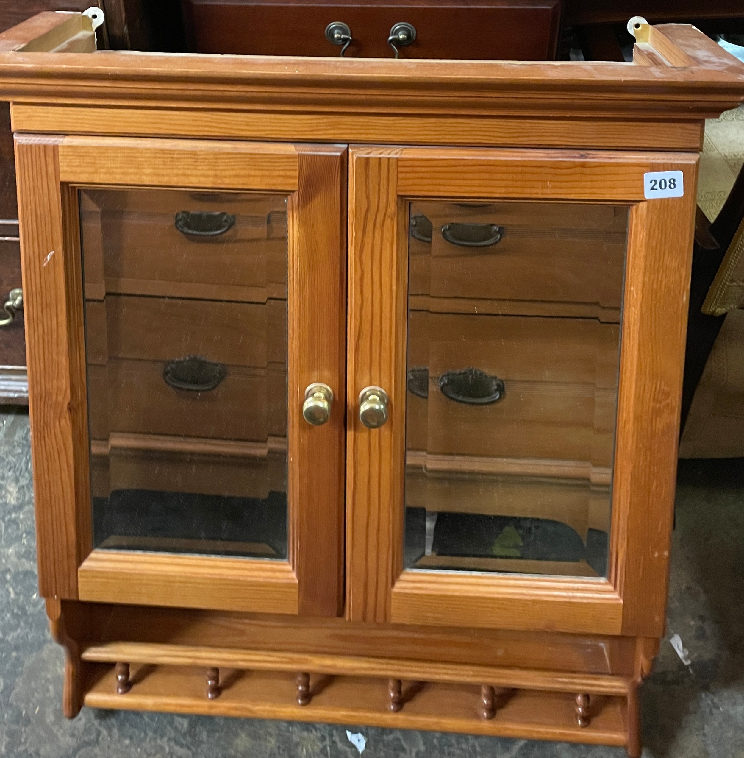 PINE WALL MOUNTED TWO MIRRORED DOOR CABINET