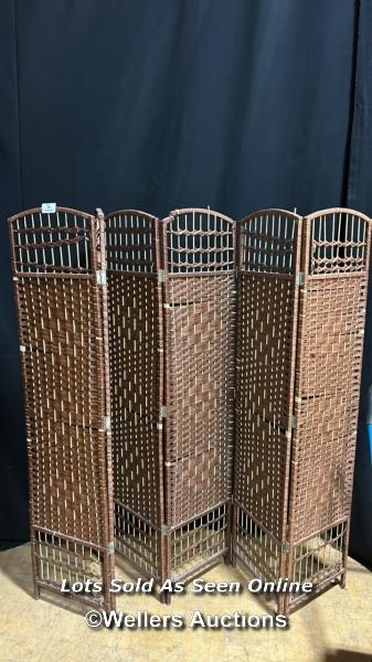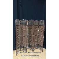 Six panel folding screen, each panel 170cm (h) x 40cm (w) / Buyer will be responsible for removal, located in the large hall / Lot Location: The Tropicana, Marine Parade, Weston-Super-Mare, North Somerset, BS23 1BE