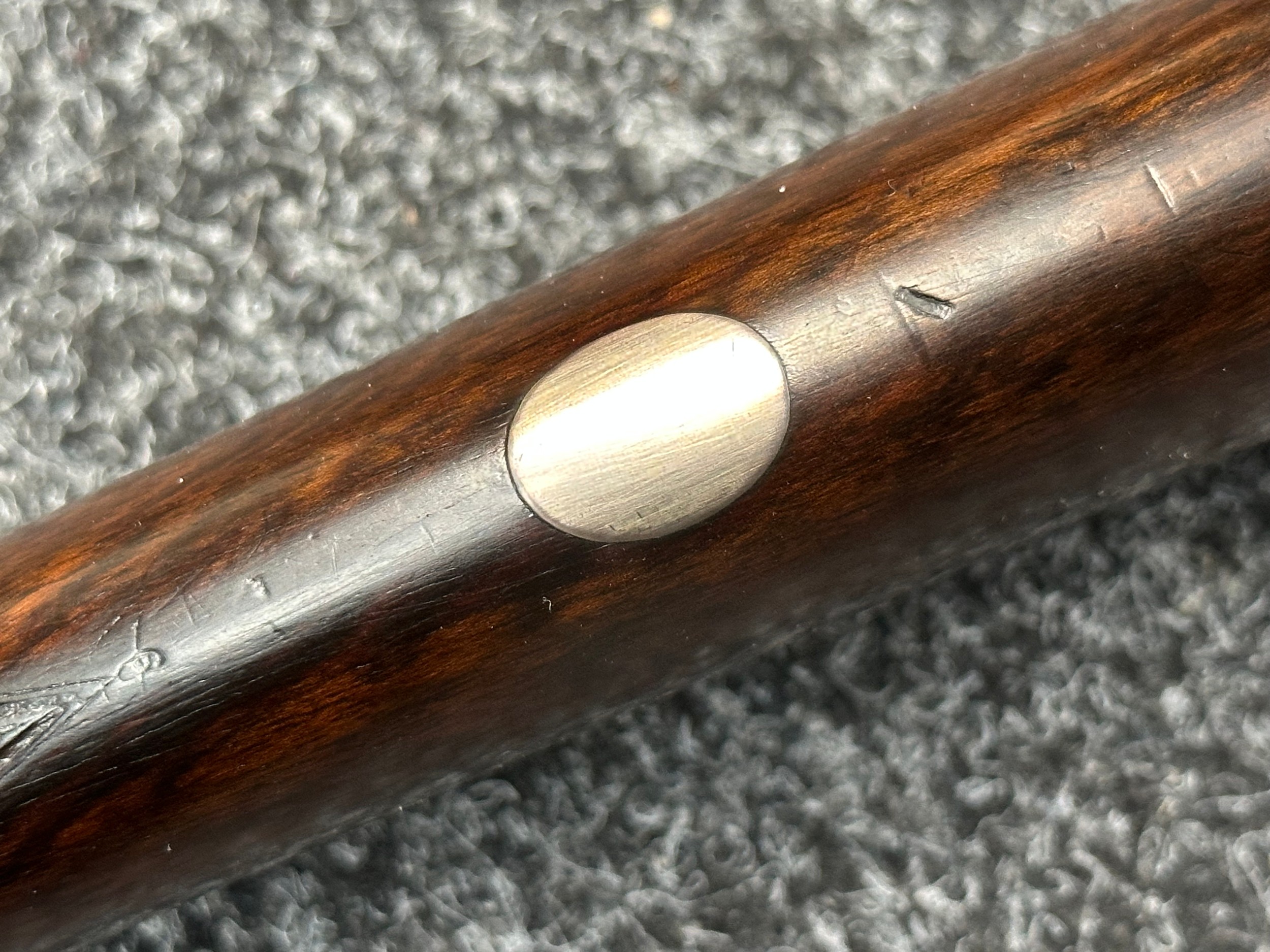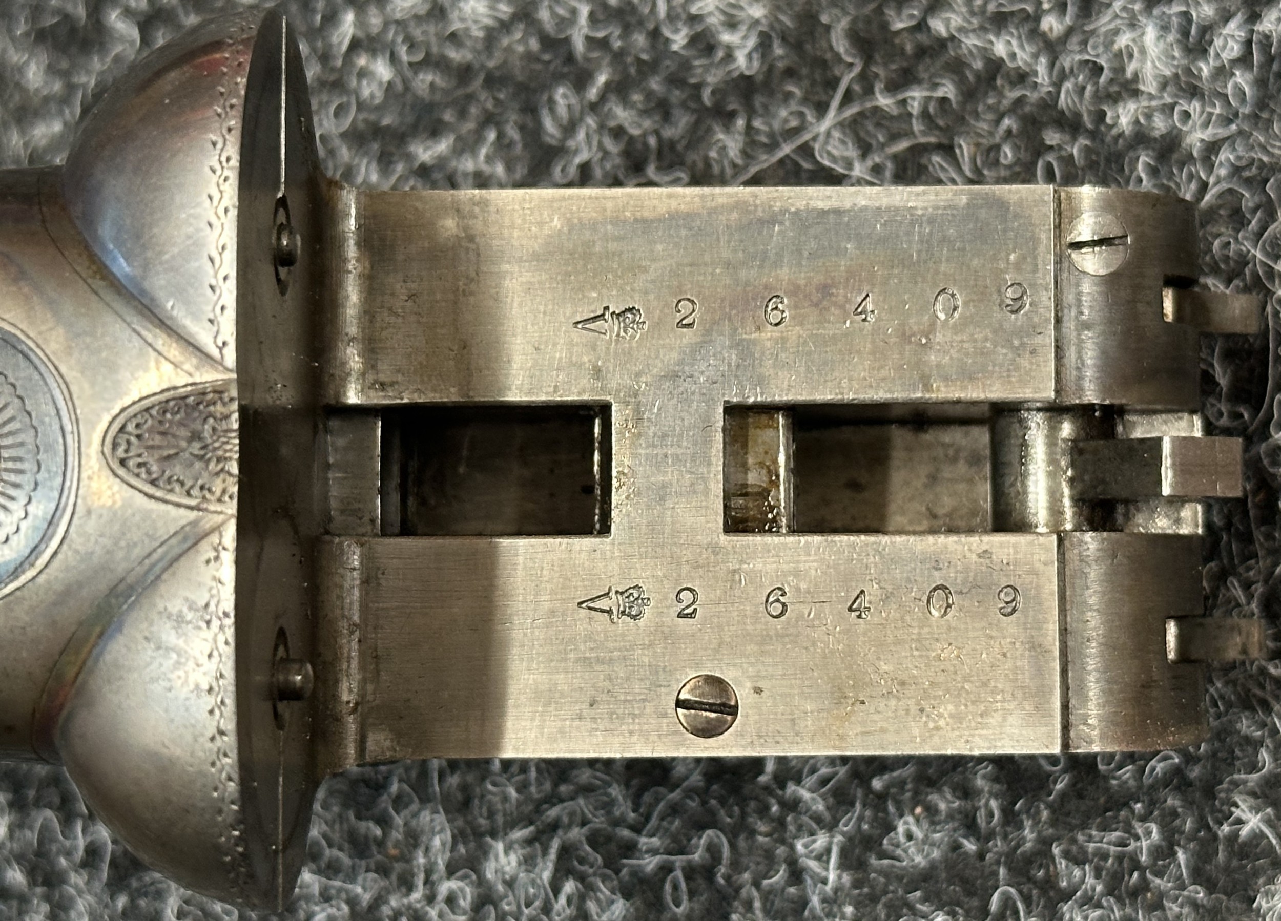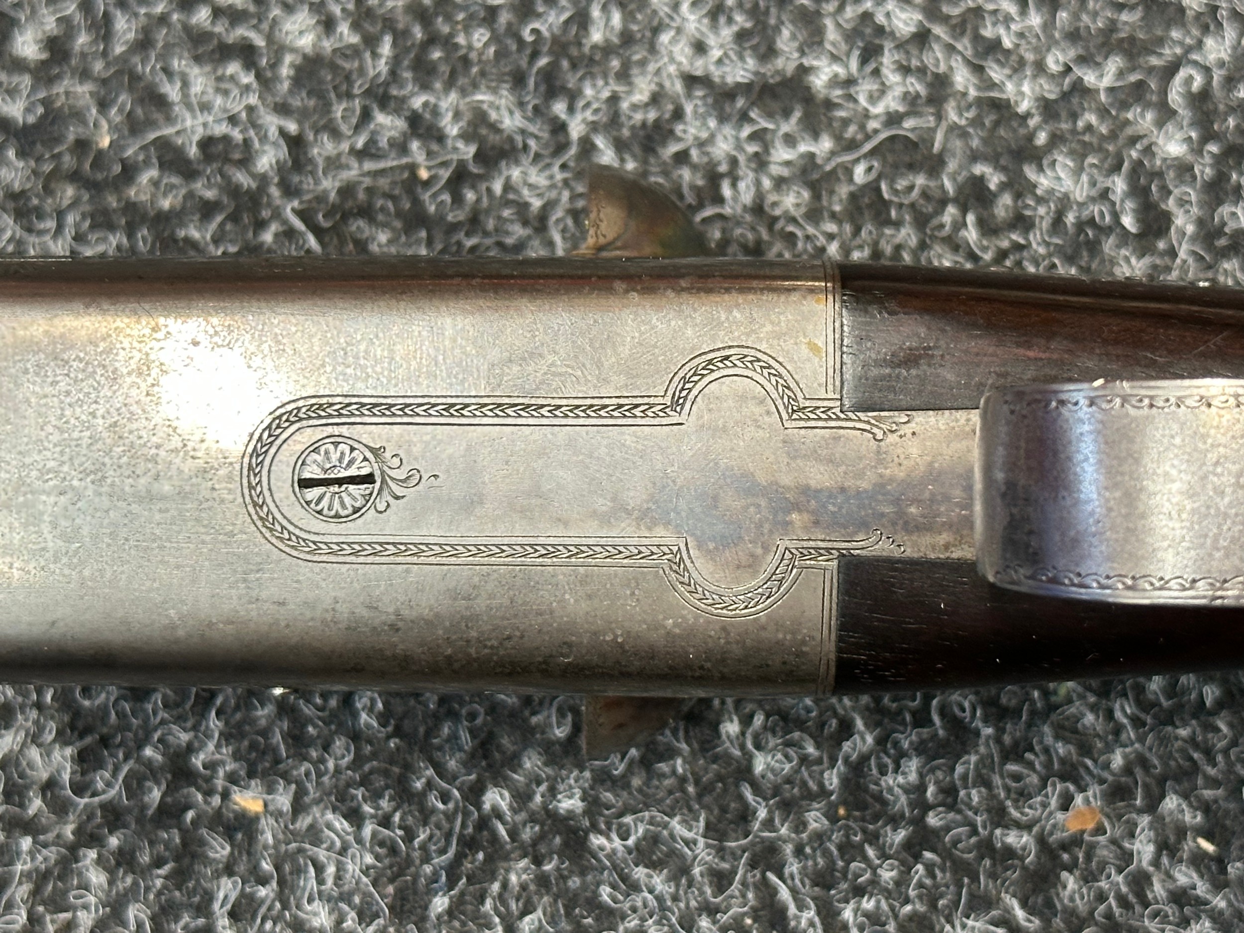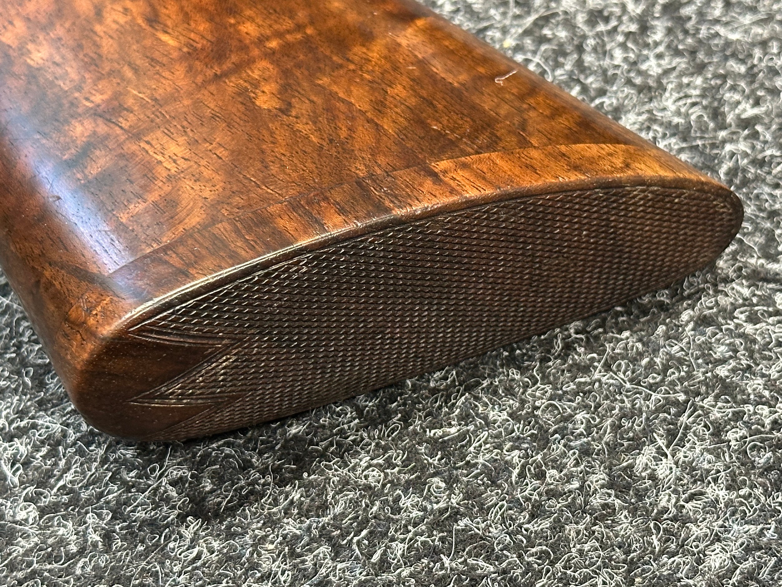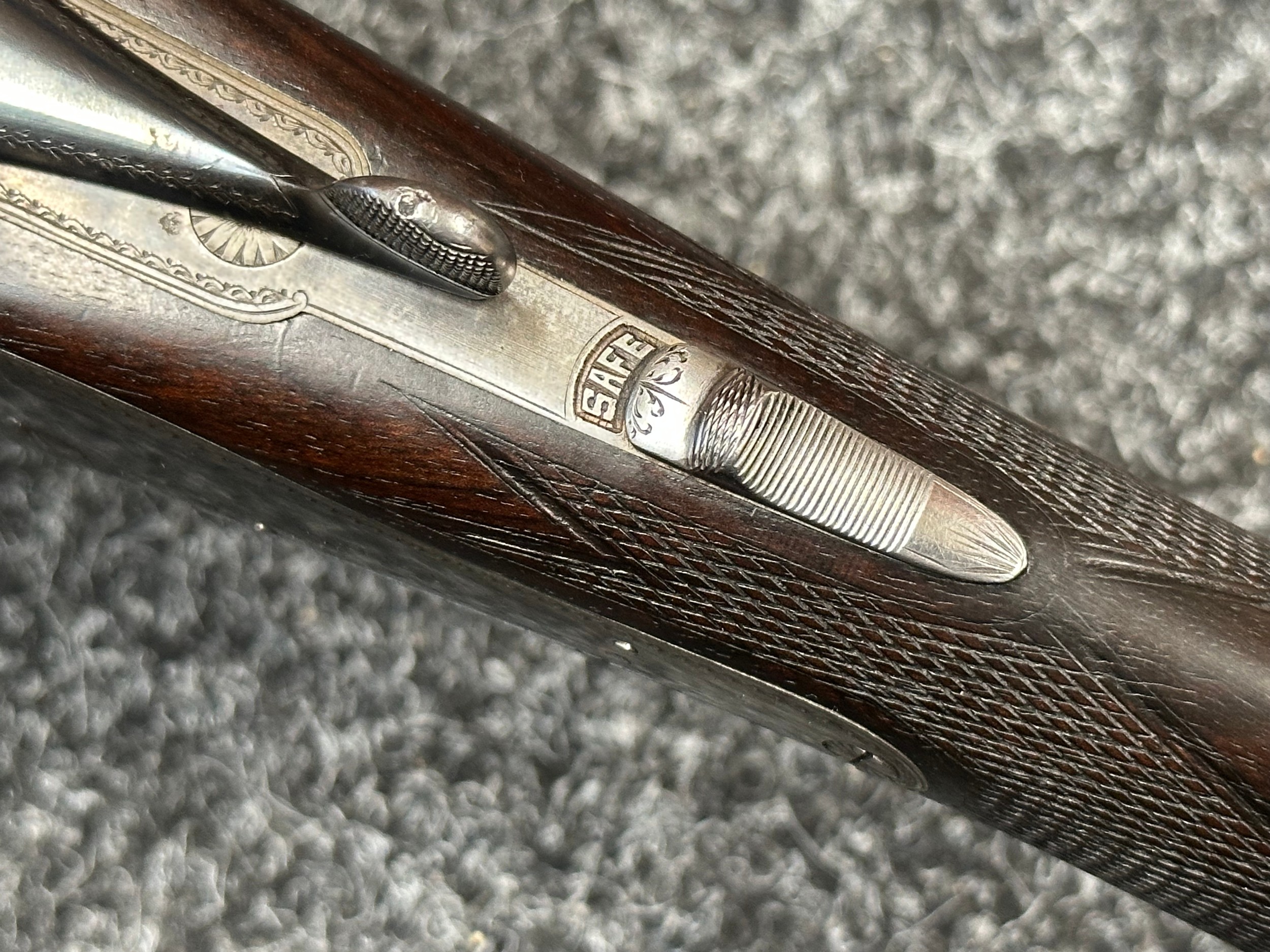 Holland & Holland 12 Bore Double Barrel Shotgun serial number 26409. 715mm long barrels (28 inch x 2 1/2) which are marked "Holland & Holland 98 New Bond Street, London". Top rib is marked "Grade C". Side lock ejector. Chokes Right barrel 1/4 and left barrel 1/2. Locks are both marked "H&H". Retains a good 50% original colour case hardening. Double trigger. Overall length 114.5cm. Stock measures 14 3/8ths of a inch. Complete in leather transit case with Holland & Holland makers lables to lid. Case contains maker marked oil bottle, unmarked wooden cleaning rods, bore brushes, H&H instruction card, etc. Lid to case is impressed with owners initials "HAP". No key to case. NOTE: Buyer must hold a valid Shotgun Certificate or be a Registered Firearms Dealer.