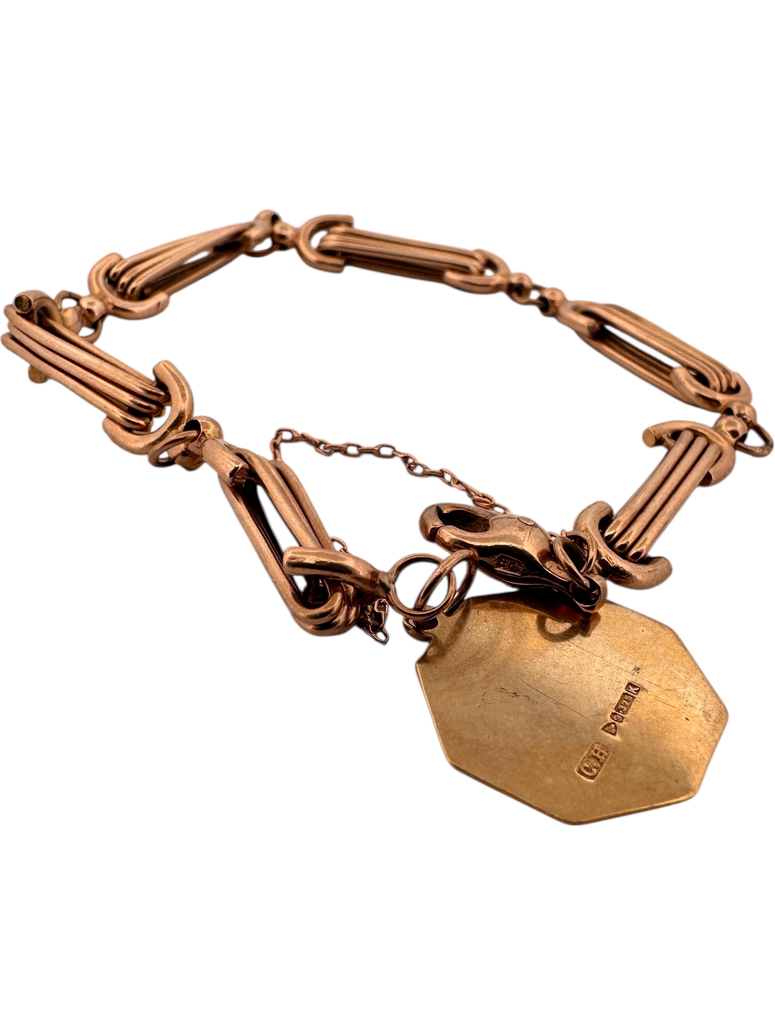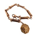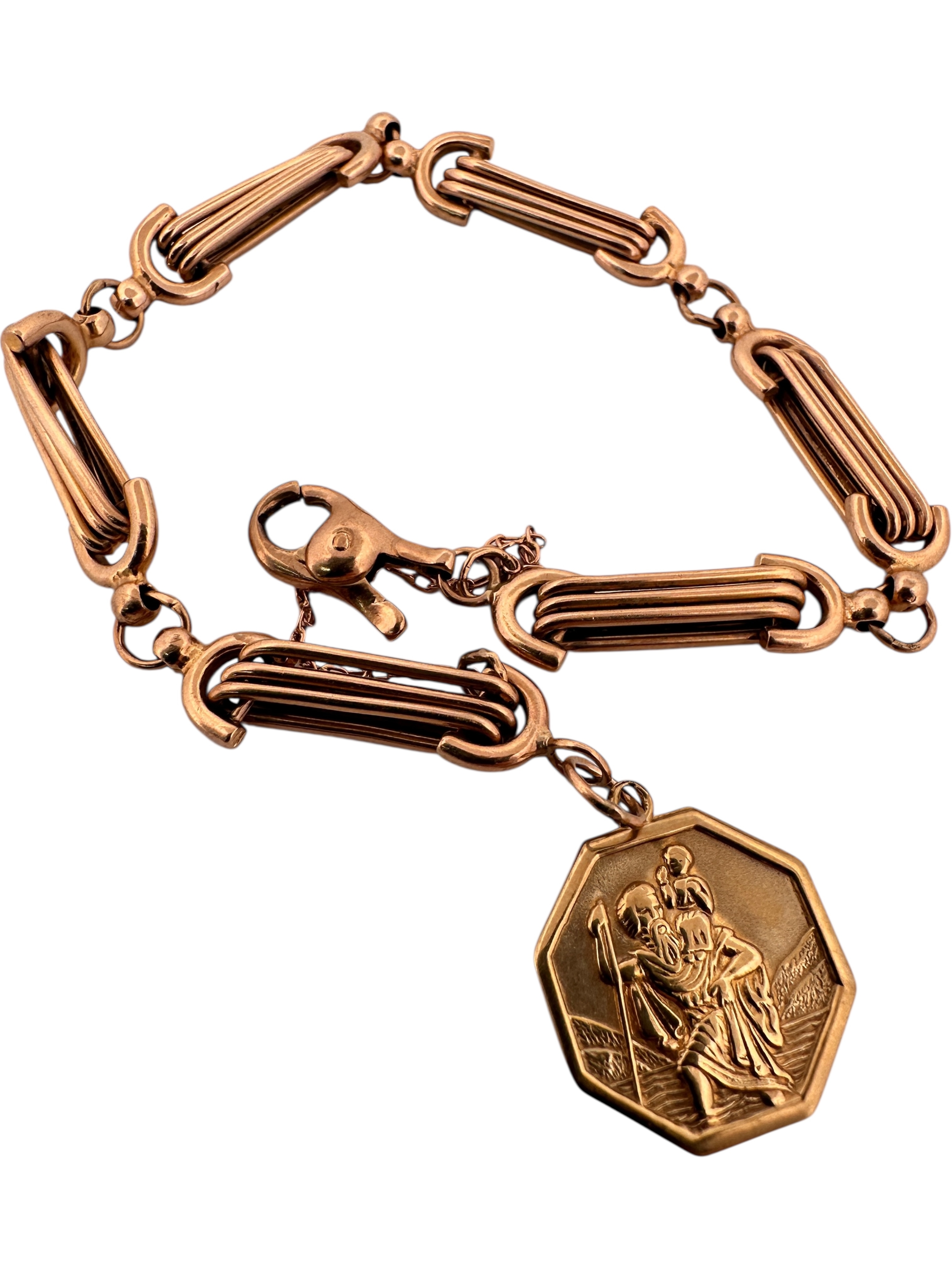 Nine Carat Gold Fancy Link Rose Gold Watch Chain Bracelet, Stamped '9Kt' with Nine Carat Gold St. Christopher Pendant, Full Hallmarks. 16.35g