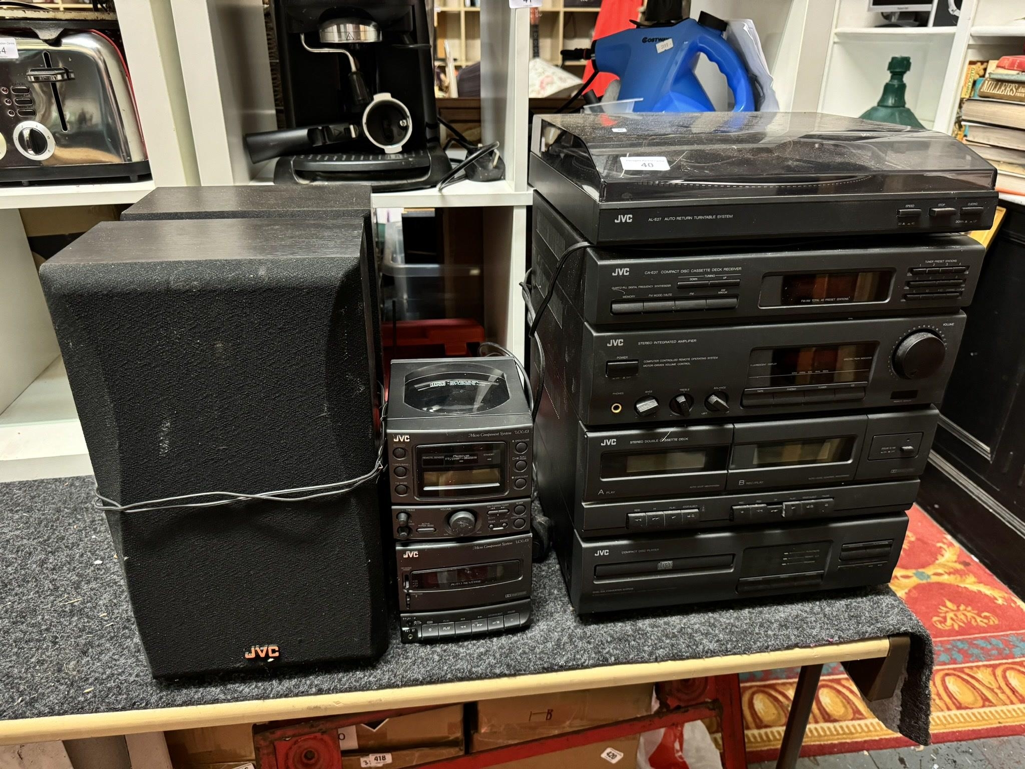 JVC AL-E27 AUTO RETURN TURNTABLE SYSTEM, CA-E37 COMPACT DISC CASSETTE DECK RECEIVER, STEREO INTEGRATED AMPLIFIER, 2 X MICRO COMPONENT SYSTEMS & SPEAKER