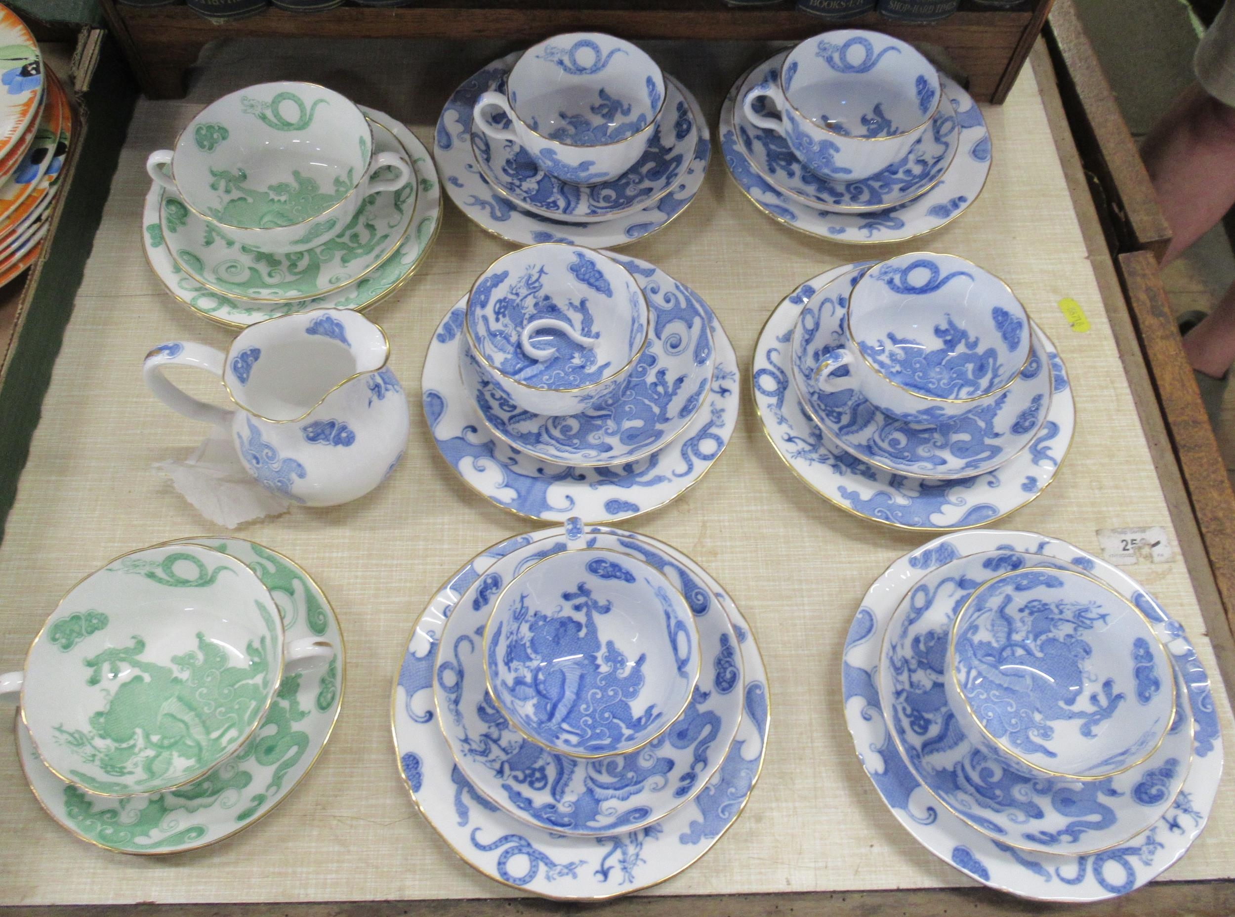 A collection of Royal Worcester blue dragon tea ware and green dragon