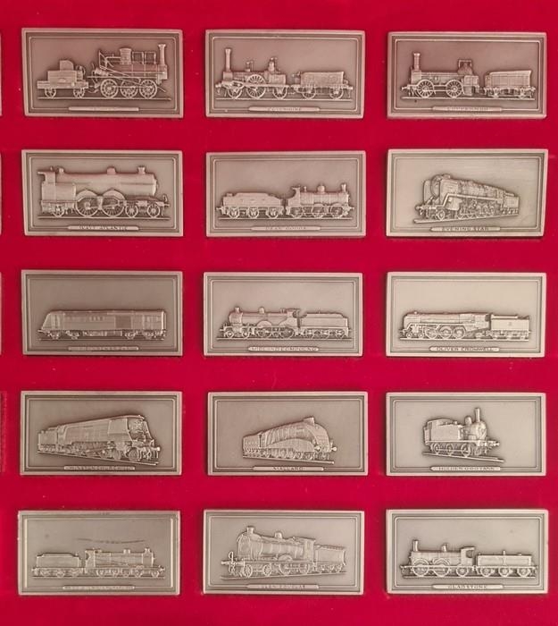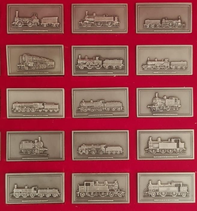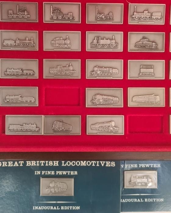 Collection of pewter ingots representing 'Great British Locomotives' and two additional train ingots