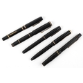 Five vintage fountain pens with 14ct gold nibs including Wat...