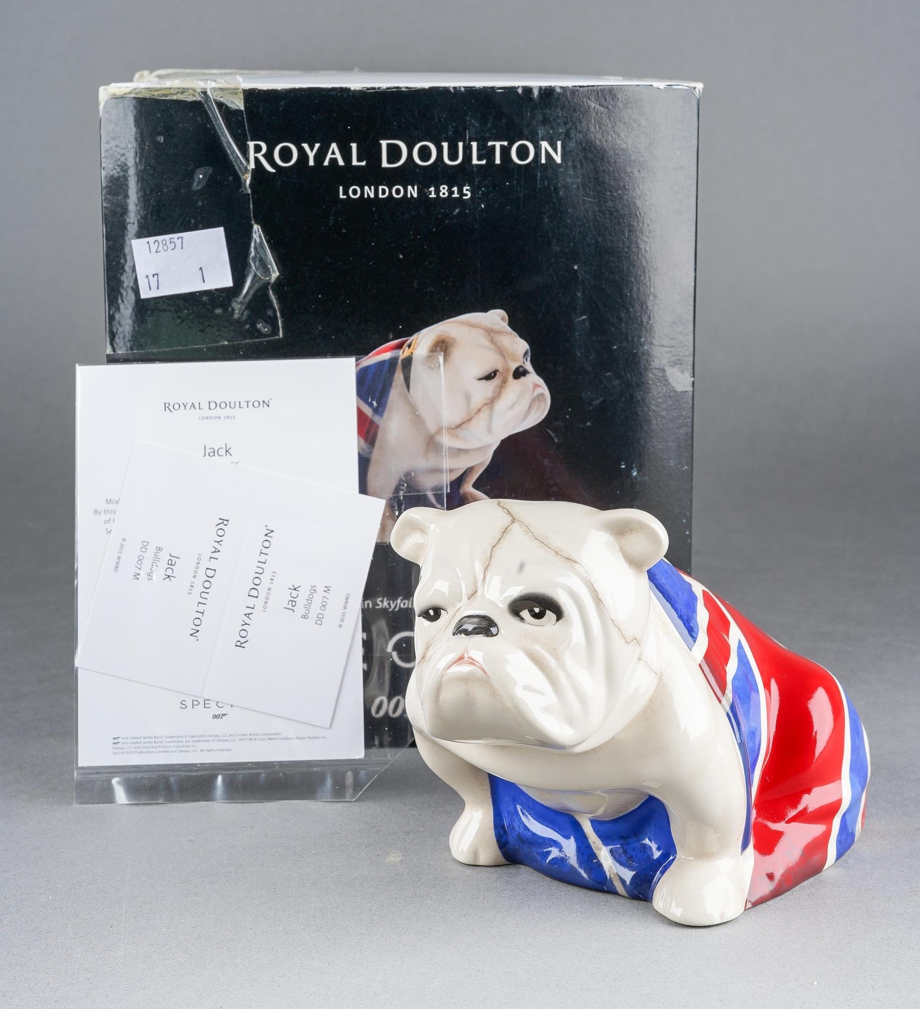 Royal Doulton James Bond [Spectre] Bull dog `Jack` DD007 within its original box and slip case, inner packing [1] wear to box, certificate lacking