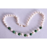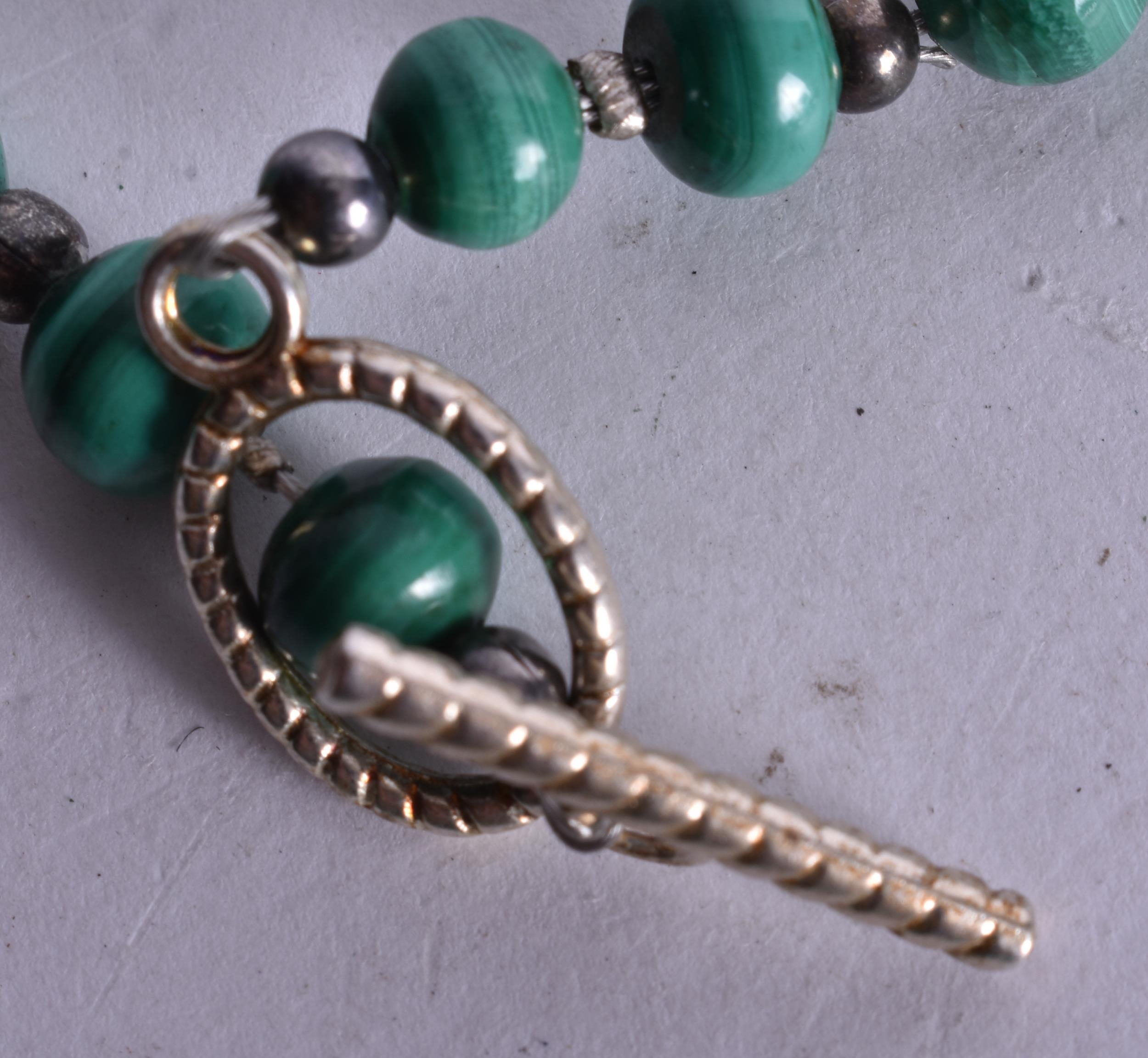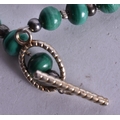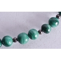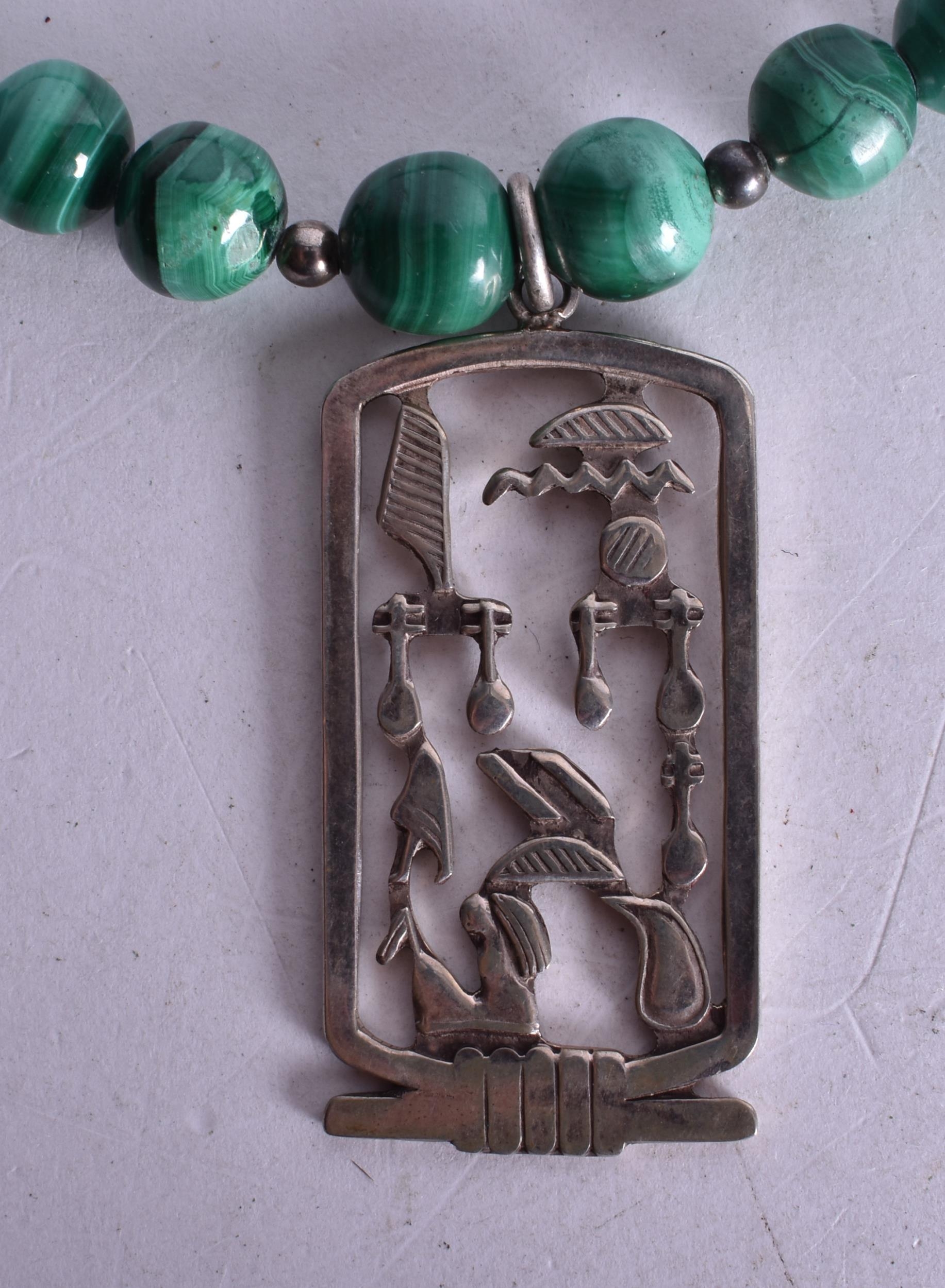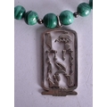 A Malachite Bead Necklace with an Egyptian Revival Pendant. Largest Bead Size 9mm, Length 48cm, Pendant 5cm x 2.4cm, weight 71g