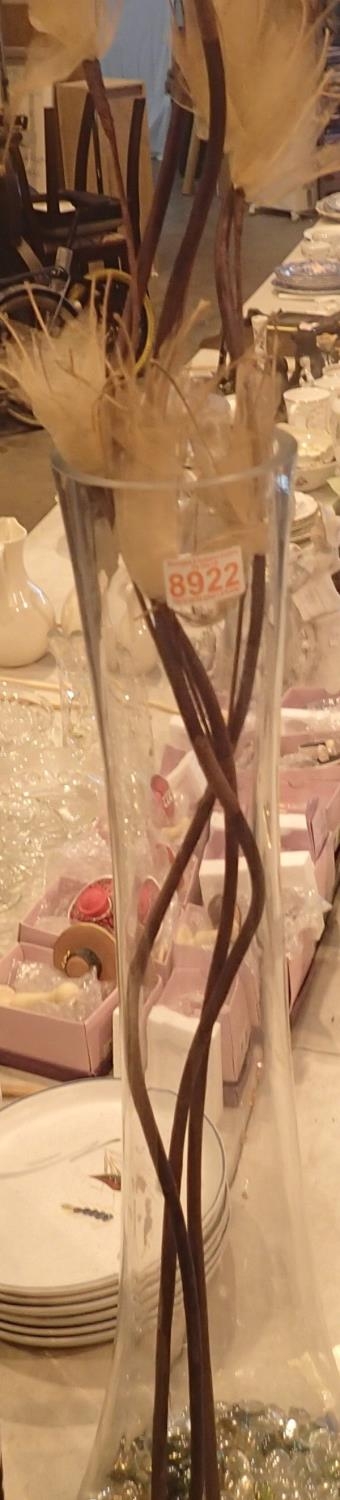 Large glass display vase with bead and display contents, H: 80 cm. Not available for in-house P&P, contact Paul O'Hea at Mailboxes on 01925 659133