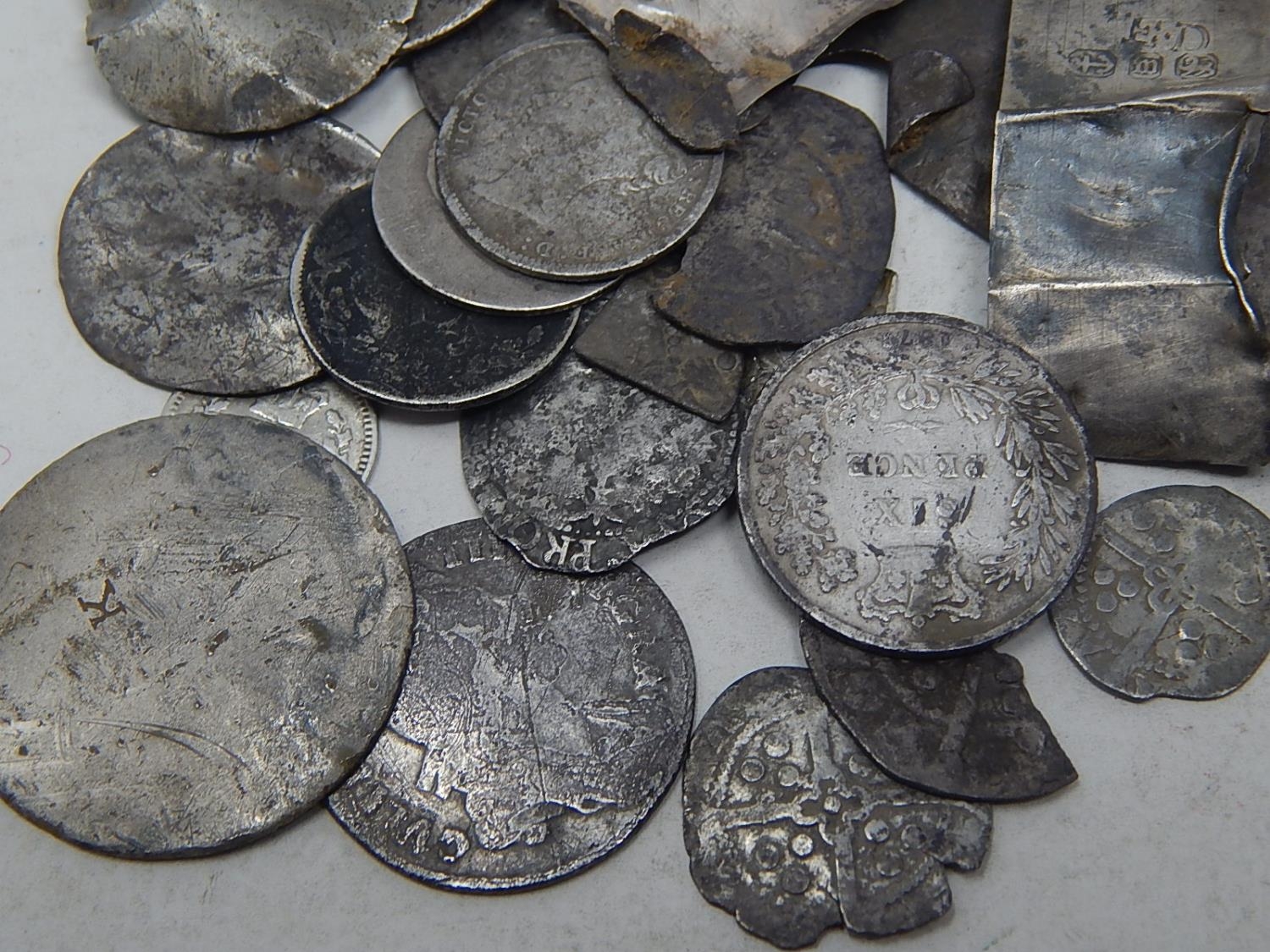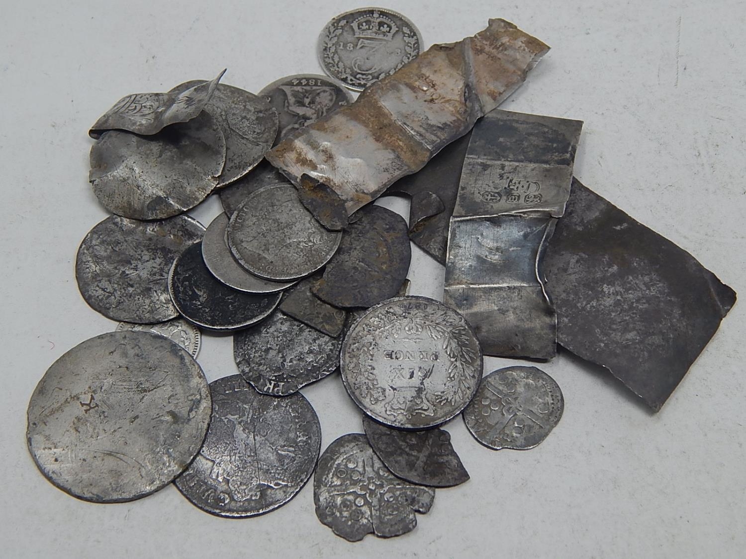 William III Silver Sixpence; William IV 1834 Threehalfpence; other misc Silver items (detector finds)