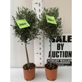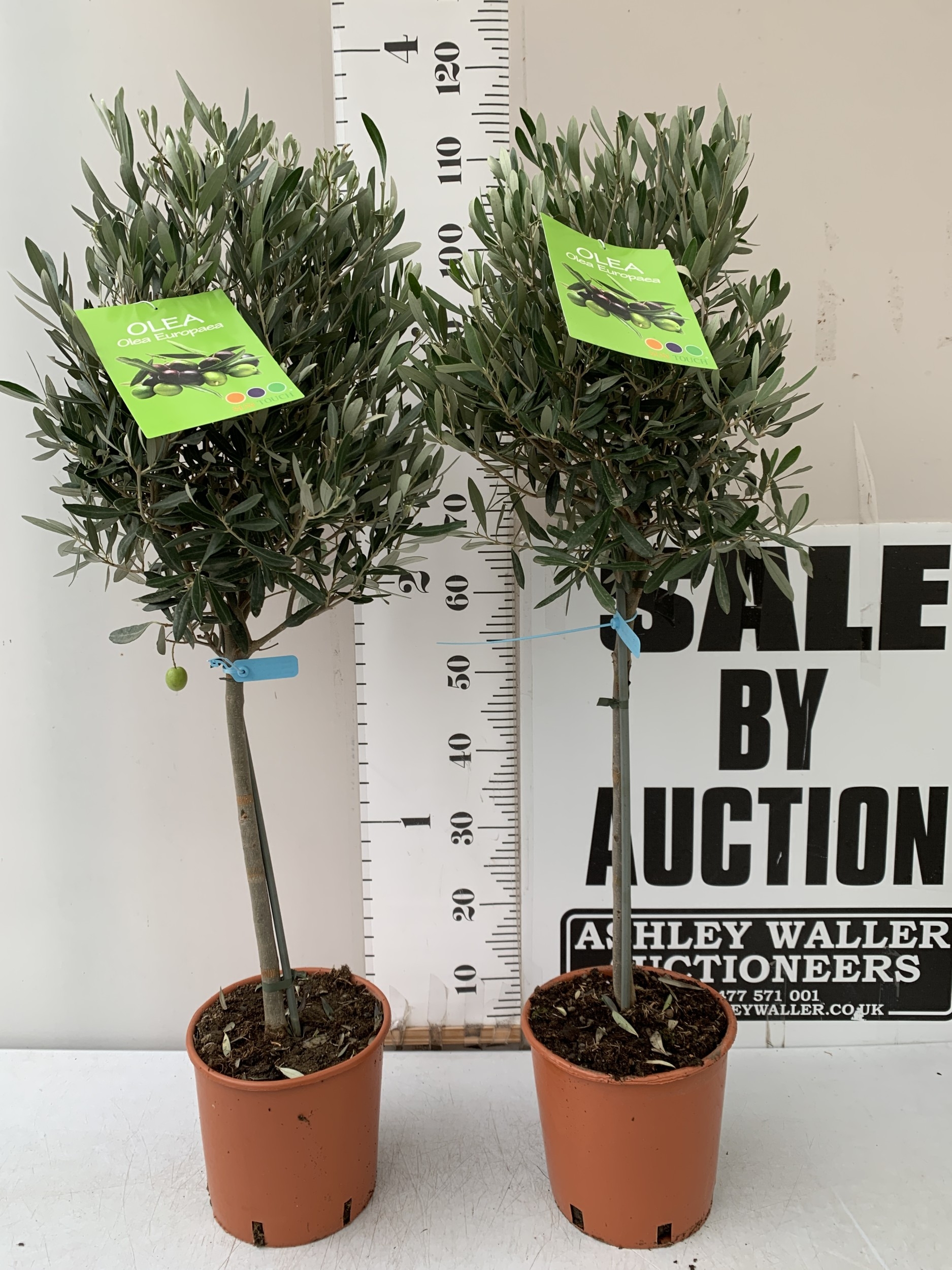 TWO OLIVE OLEA STANDARD TREES IN 3.5 LT POTS. APPROX 110CM TALL, TO BE SOLD FOR THE TWO. NO VAT
