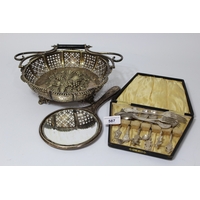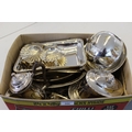 Box containing a quantity of various silver plated items including entrée dishes, engraved biscuit barrel and a canteen of cutlery by Viners