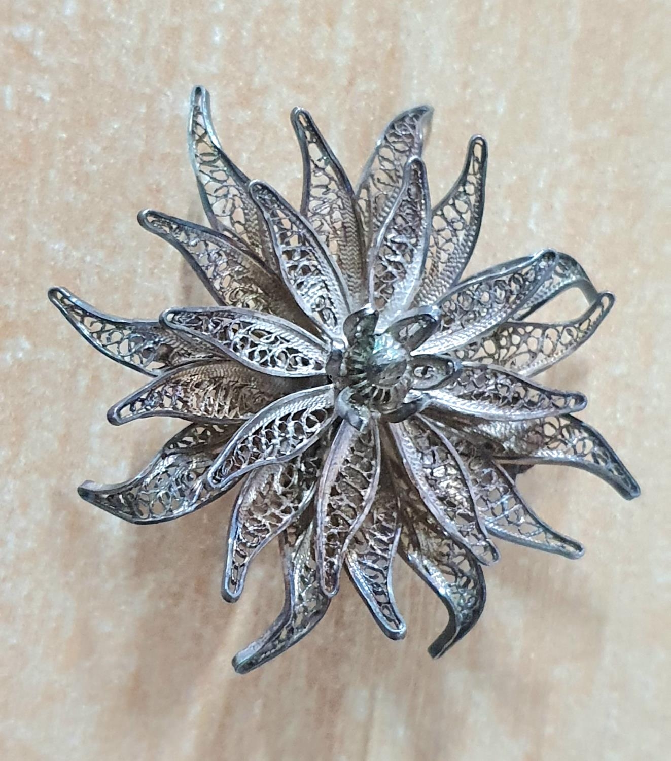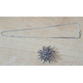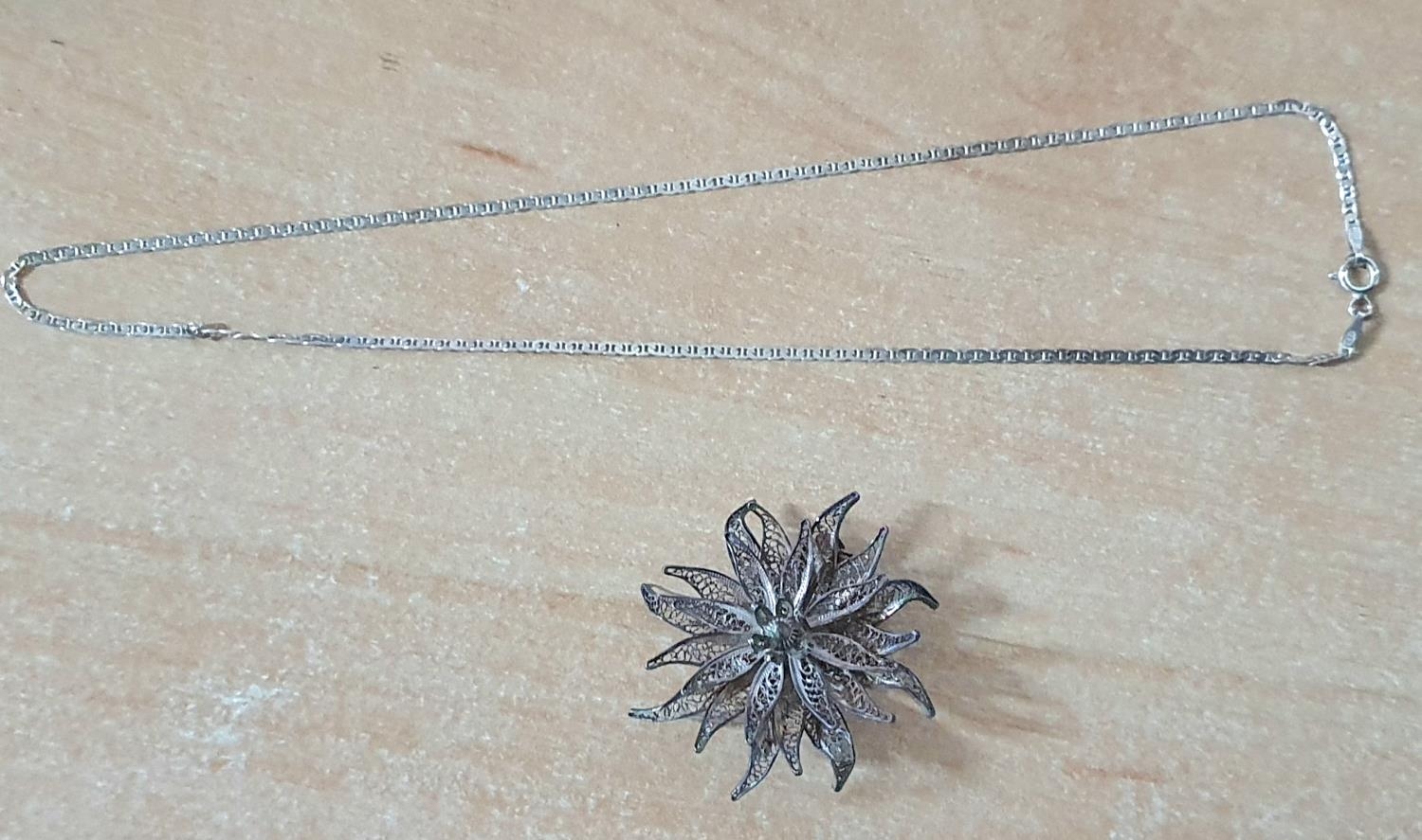 Italian silver necklace together with an ornate filigree silver flower brooch (2)