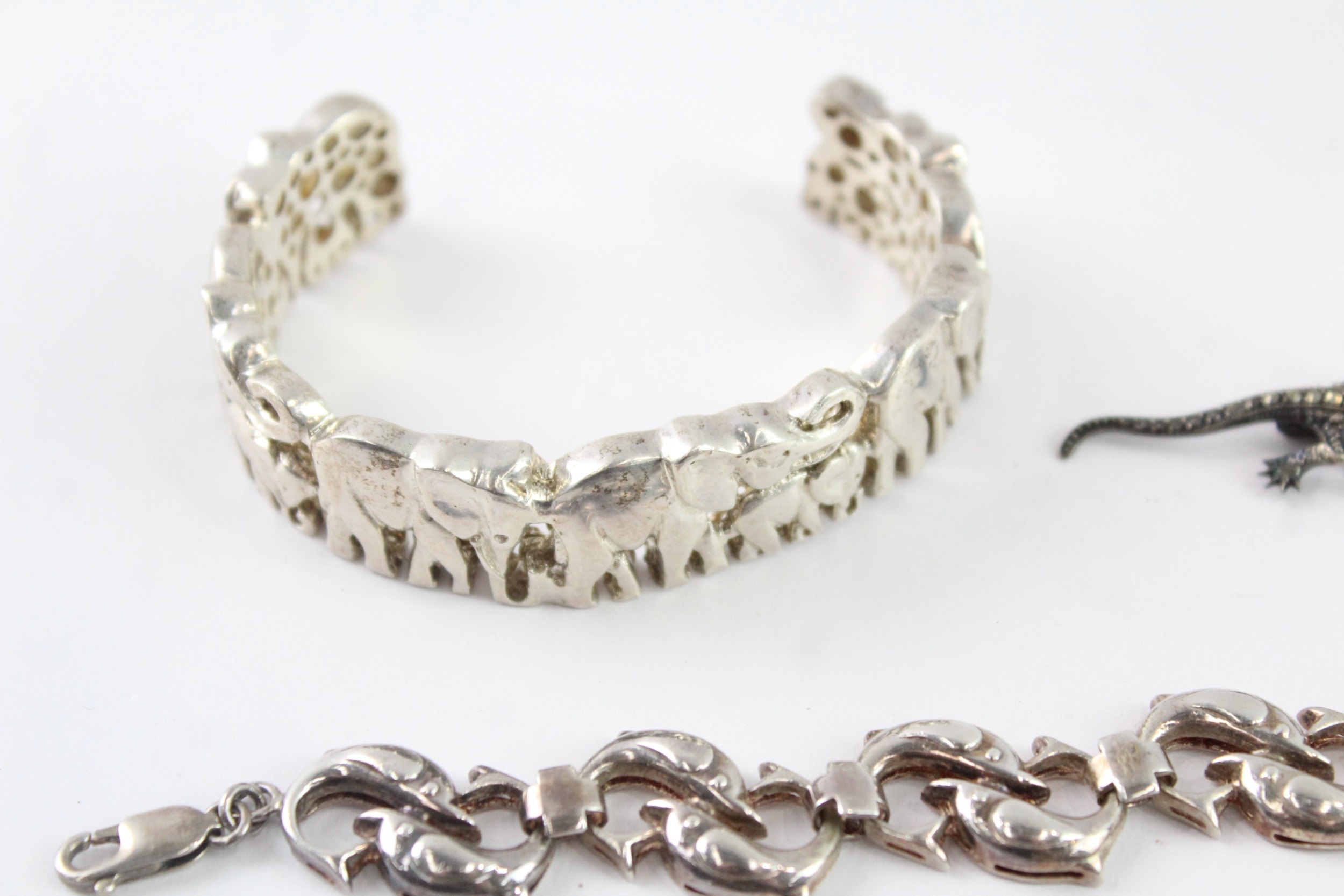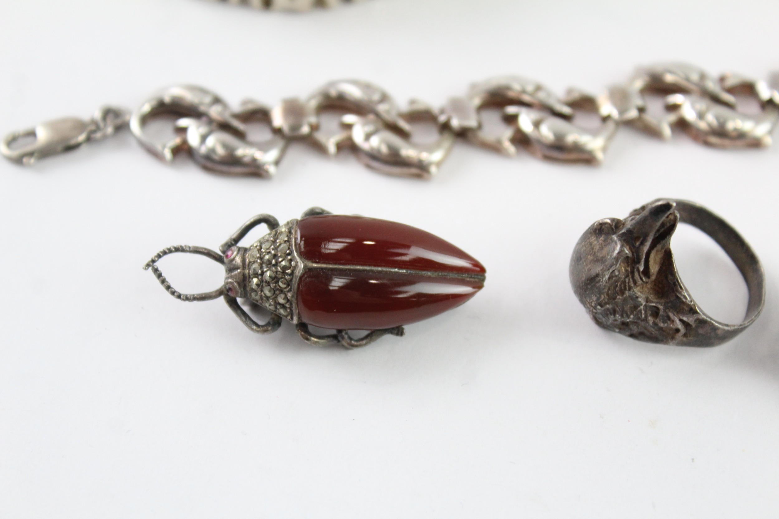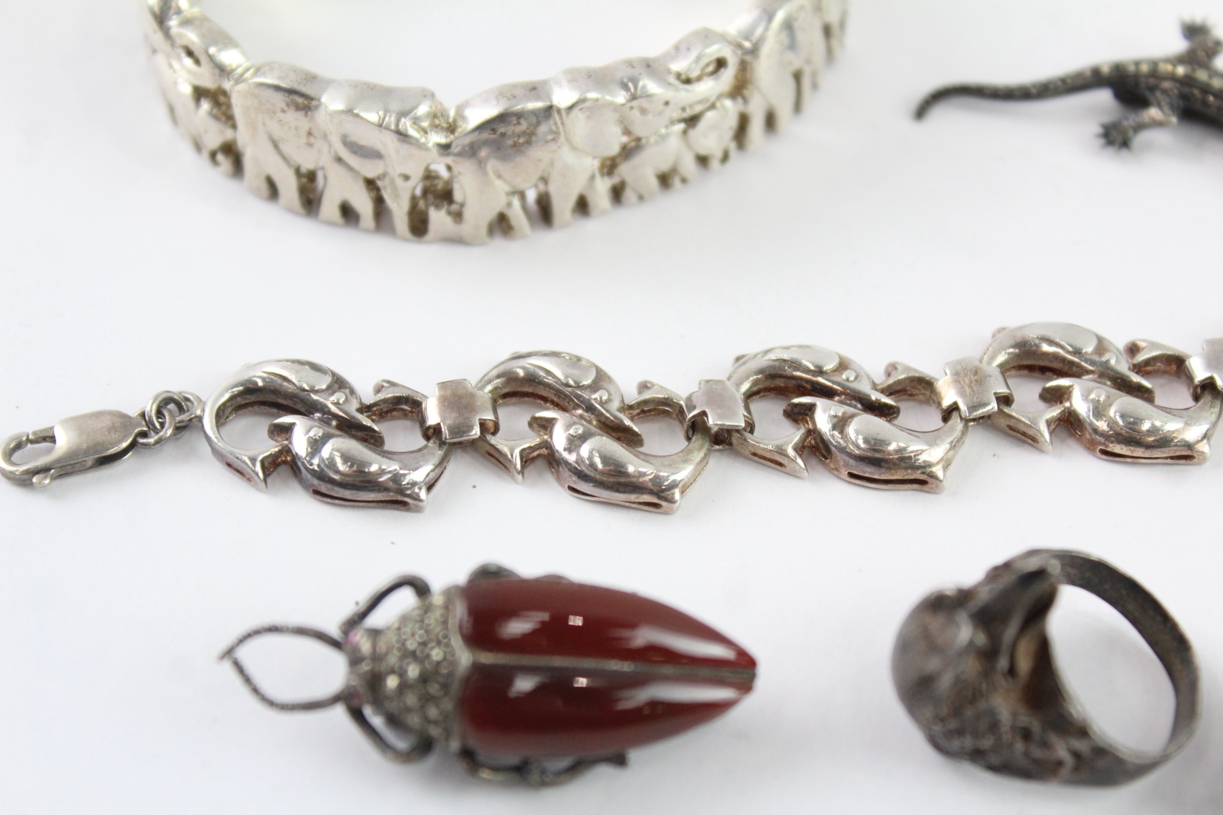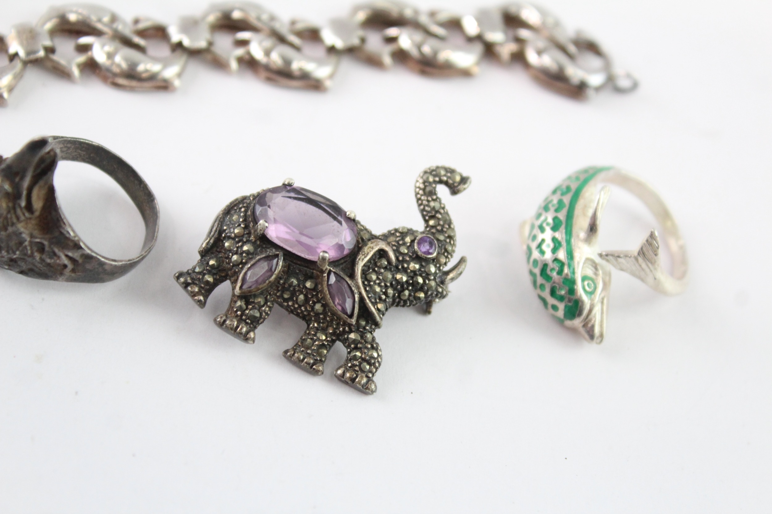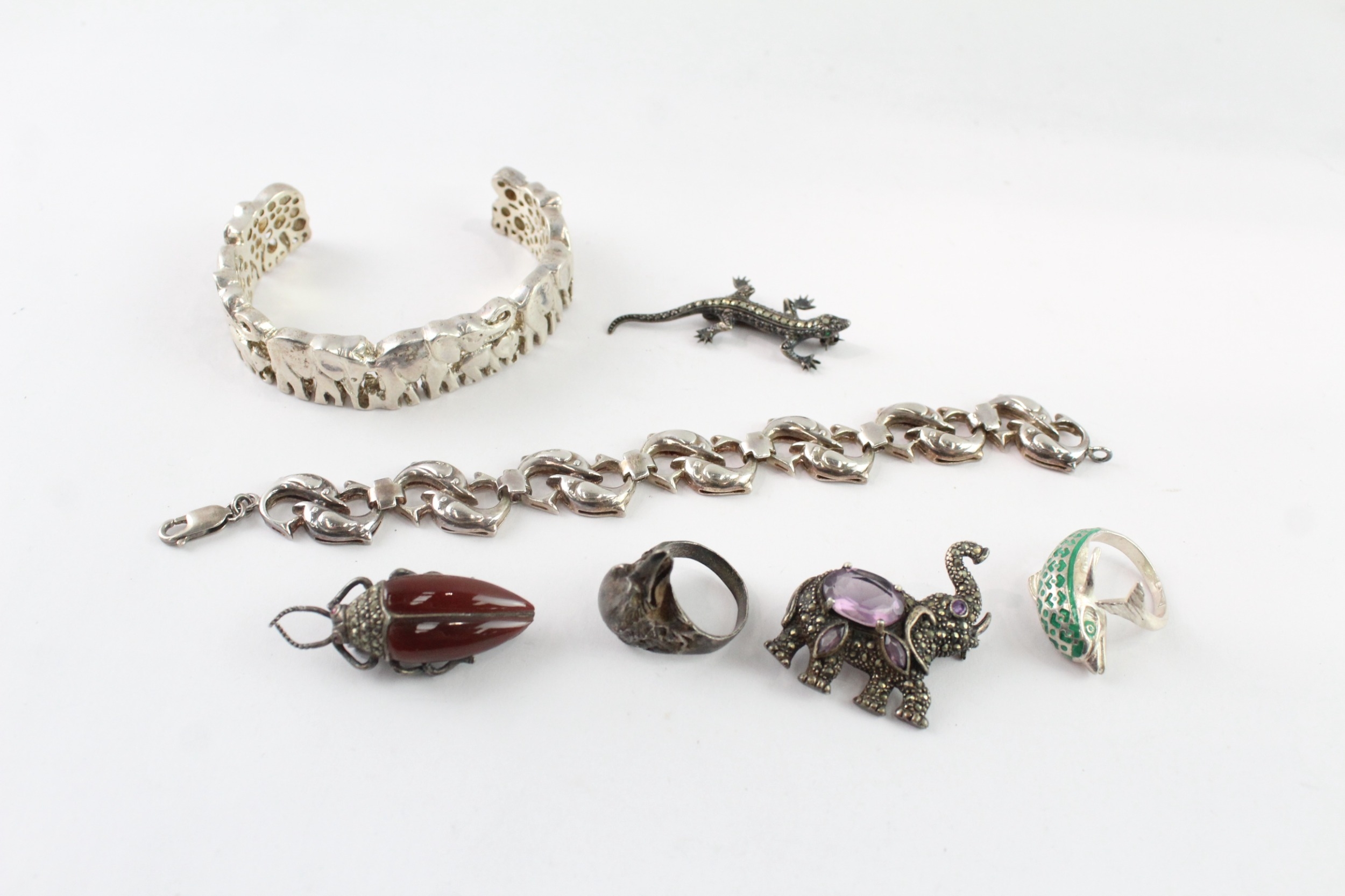Collection of Sterling Silver Animal Jewellery, inc. Marcasite, Gemstone x 7 (127g)