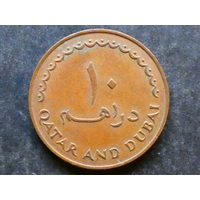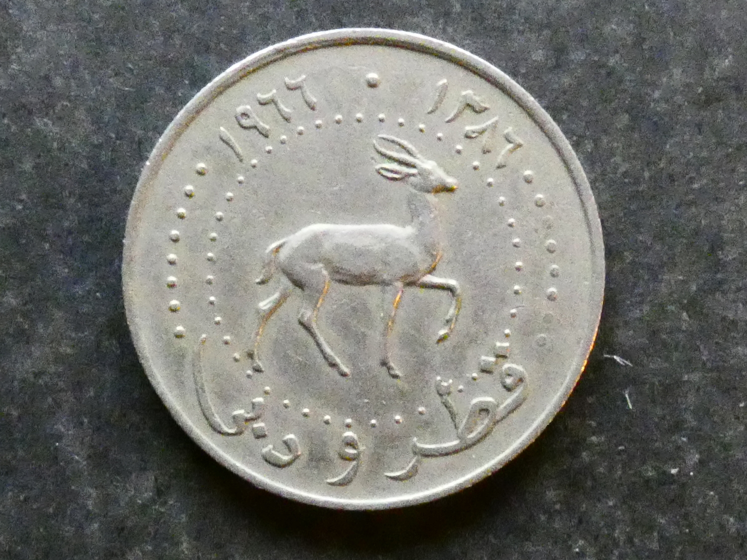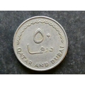 COIN. Qatar & Dubai, Sheikh Ahmad bin Al Thani, Ahmad II of Qatar, AH 1380-1392 (1960-1972 CE) with Sheikh Rashid bin Saeed Al Maktoum of Dubai AH 1378-1411 (1958-1990 CE), joint coinage, copper-nickel 50 Dirhems, AH 1386 = 1966 CE, KM5, VF