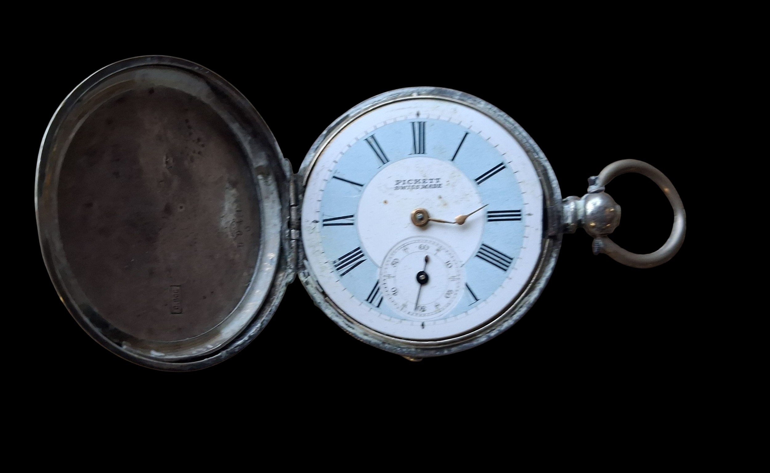AN 800 STAMP SILVER POCKET WATCH BY PIOKET