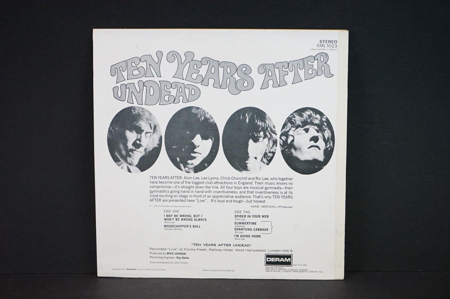 Vinyl - 4 Ten Years After LP's to include Ssssh (SML 1052) Stereo Vg+, Cricklewood Green (SML 1065) Stereo sleeve Vg+ with spine wear, vinyl Ex, Undead (SML 1023) Stereo sleeve Vg+ (needs slight reglue to bottom seam, Vinyl Ex, and Live At The Filmore East (CRBV 1093) 3 LP reissue sealed.