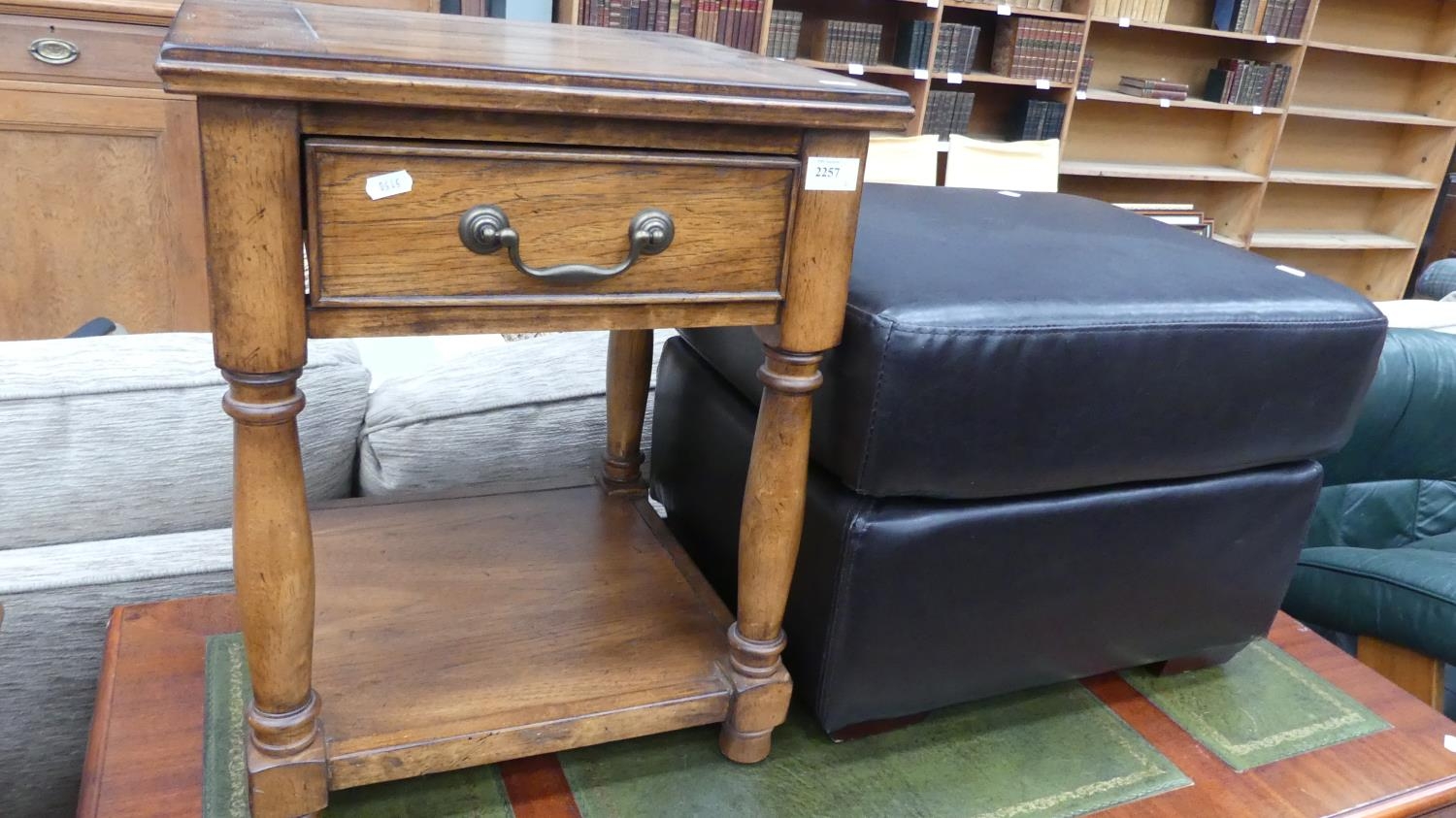 Oak Bedside & A Leather Footstool
