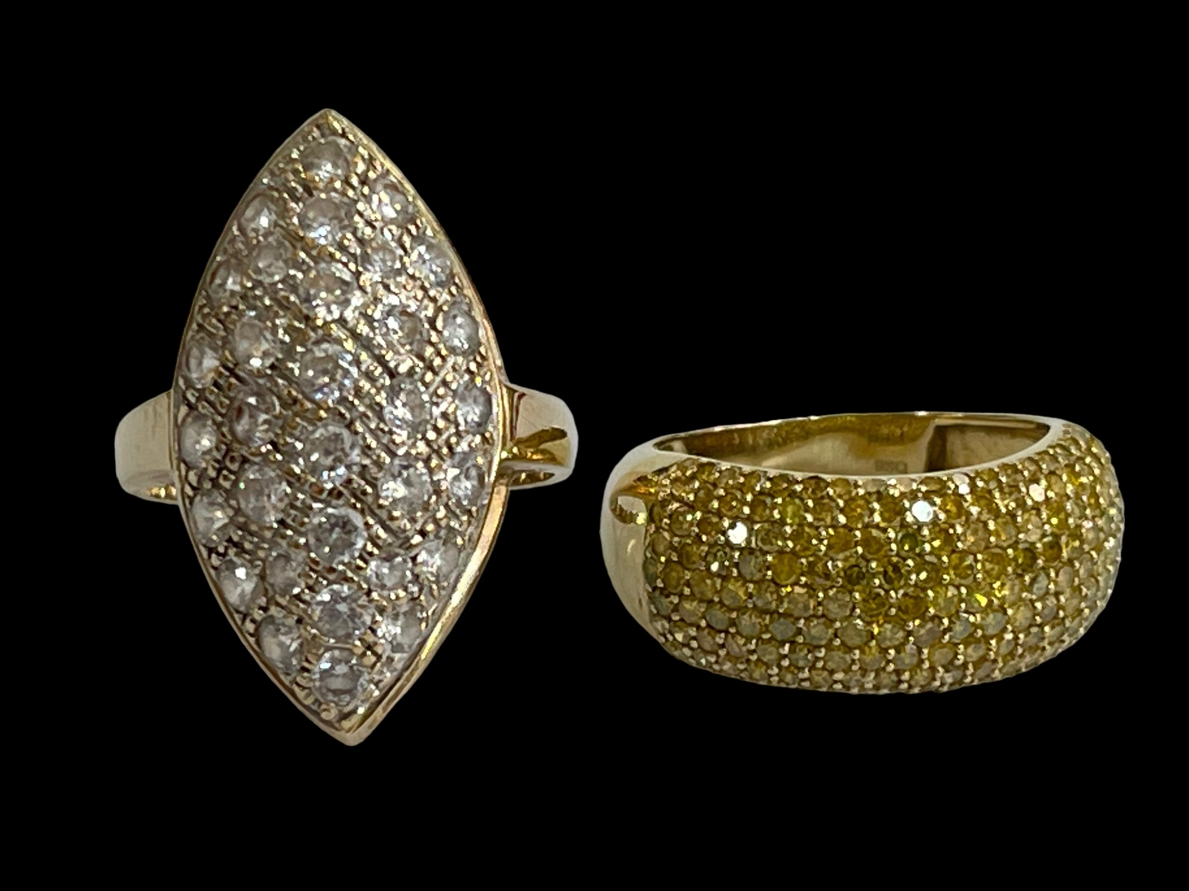 Two 9 carat gold dress rings, size R and T.