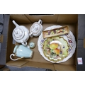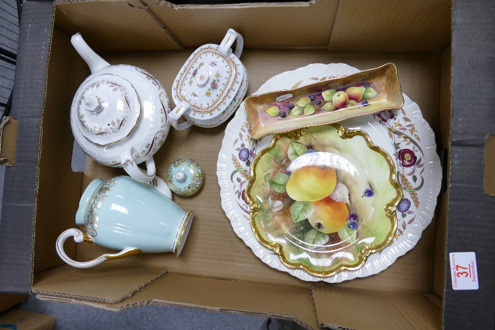 A mixed collection of item to include: Wedgwood Cornflower Patterned Platter, Hand decorated Coalport plates, Spode Pepflow & Burgundy patterned items together with Tuscan China Teapot