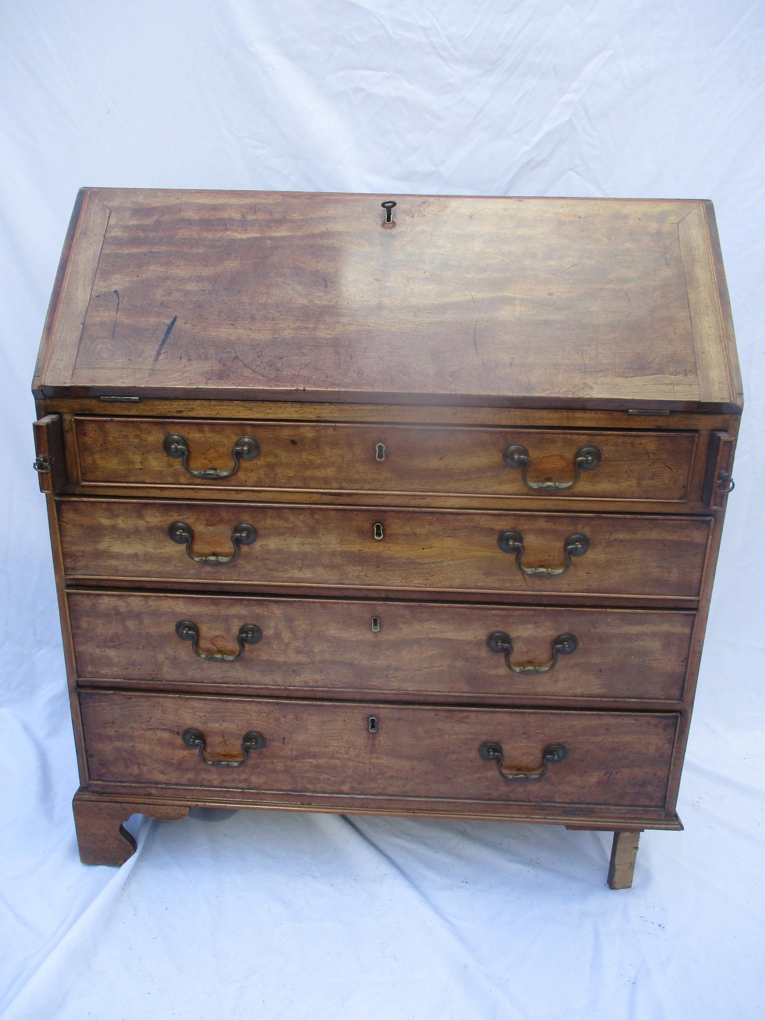 A Georgian mahogany bureau having a fall flap above four graduated drawers 104cm h x 91.5cm w