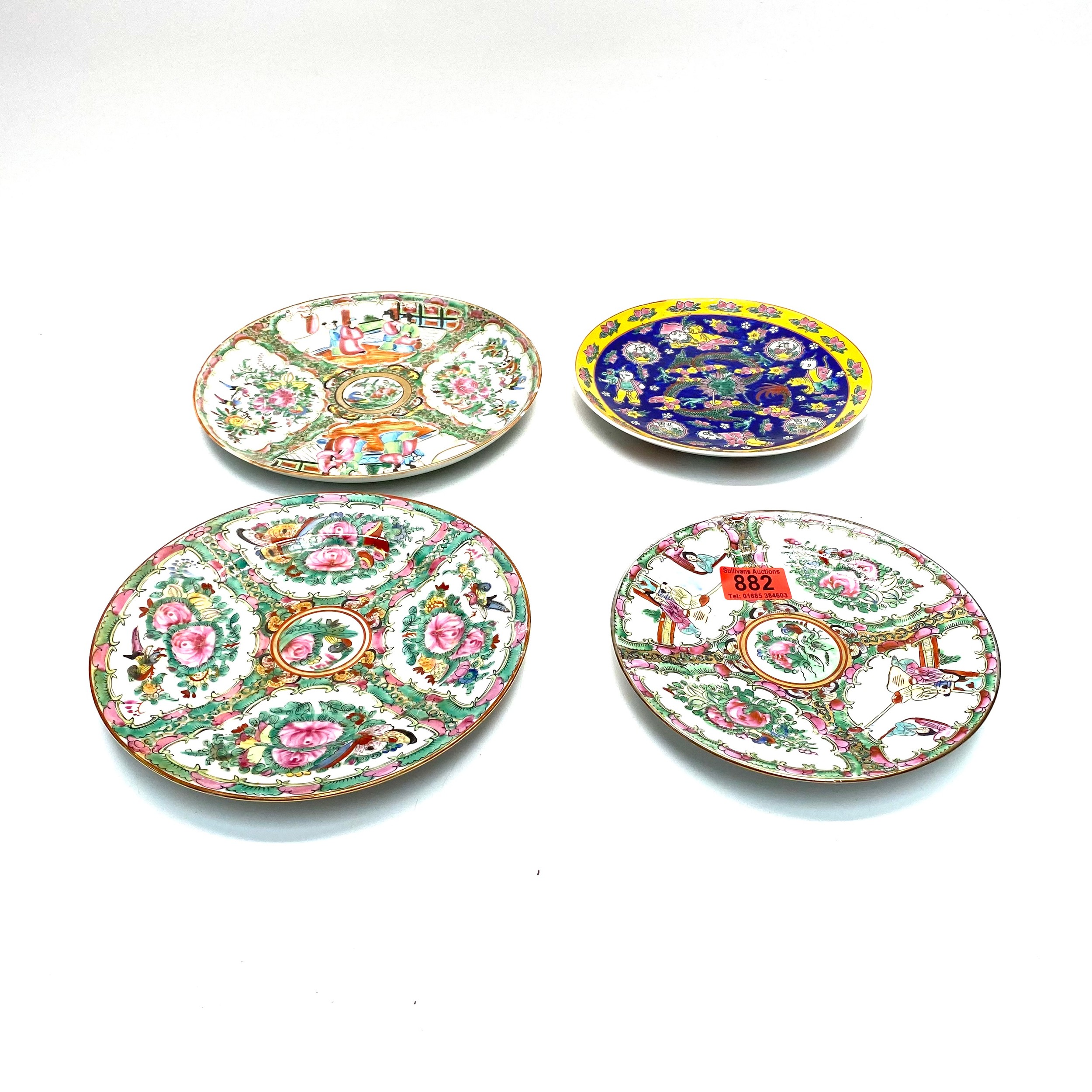 Four Chinese plates with marks to base including famille rose pattern