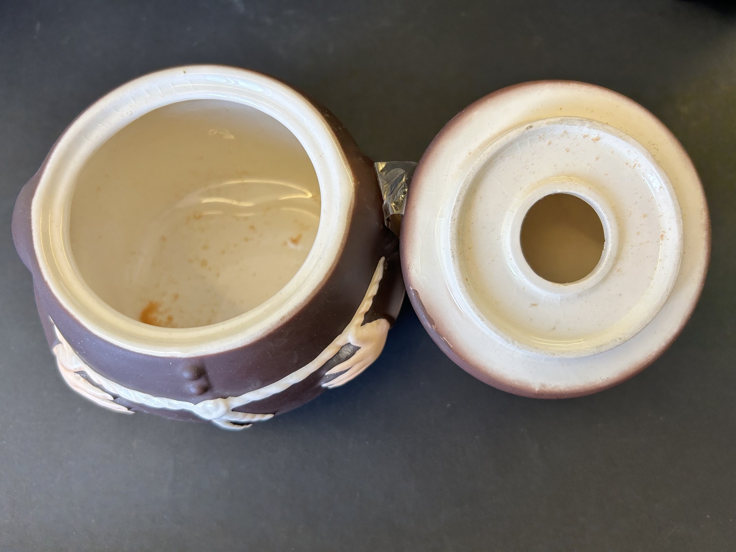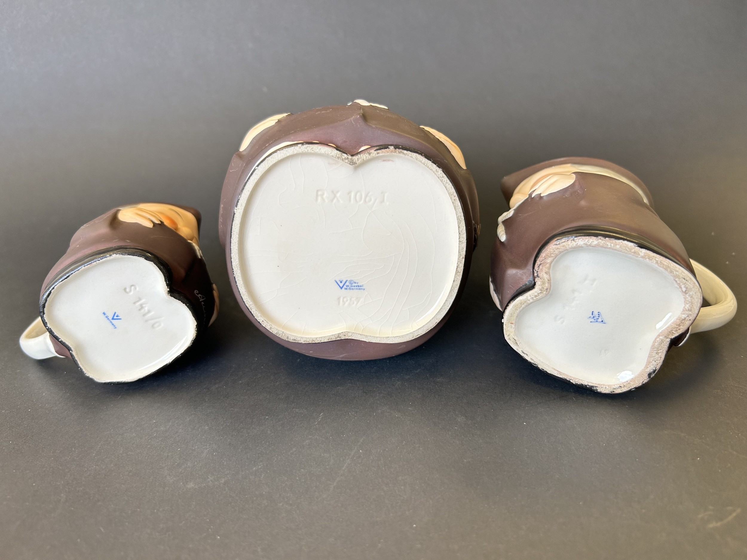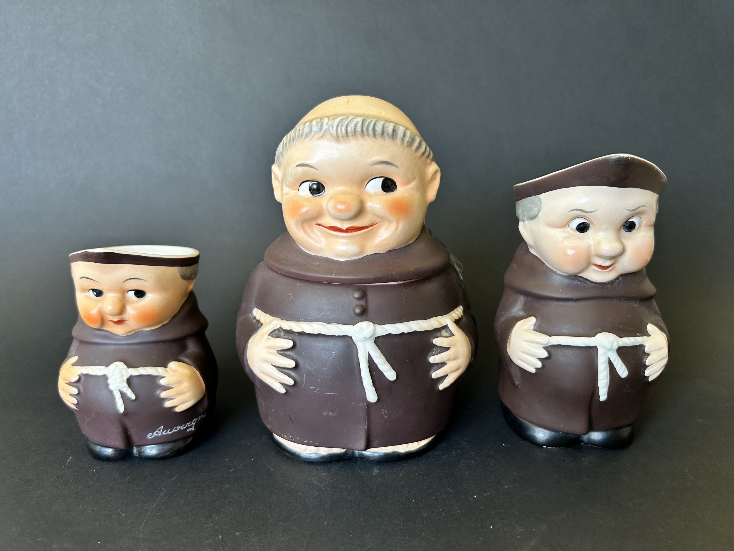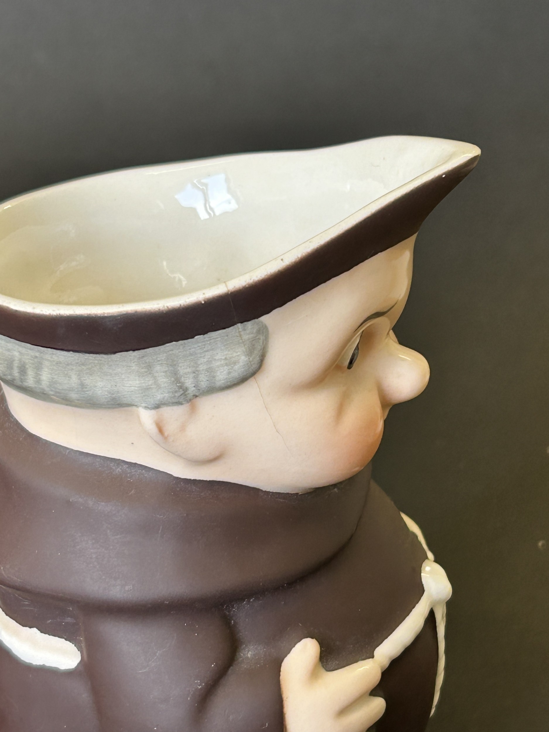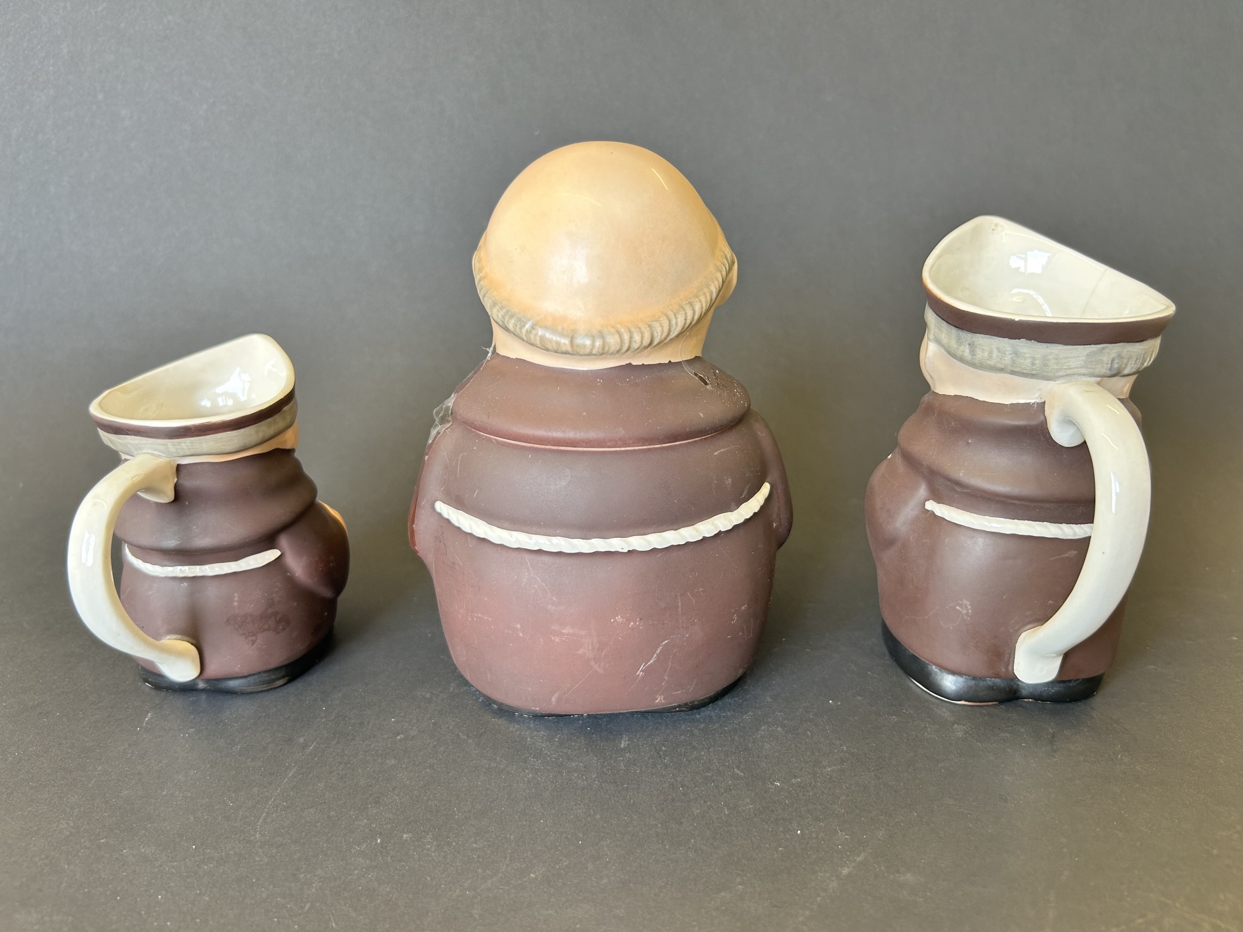 Three vintage West German Goebel monk items to include two jugs (one with hairline crack) and a lidded jar