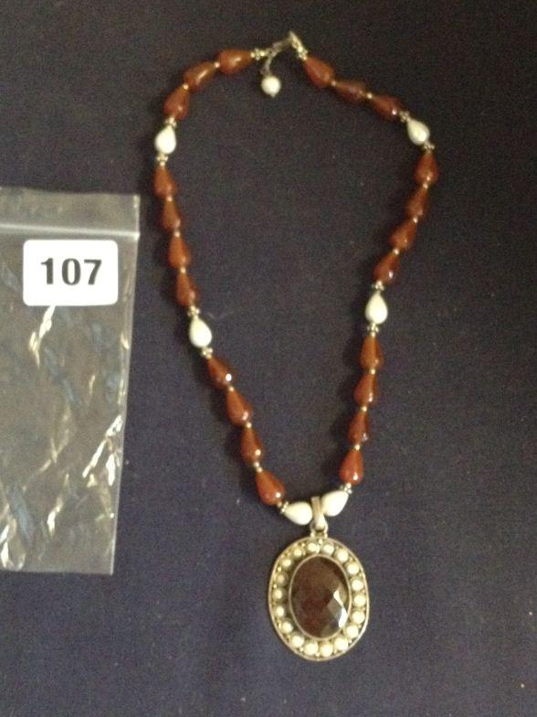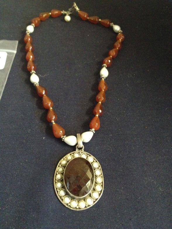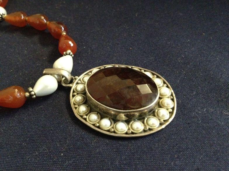 Silver Pearl And Cornelian Necklace