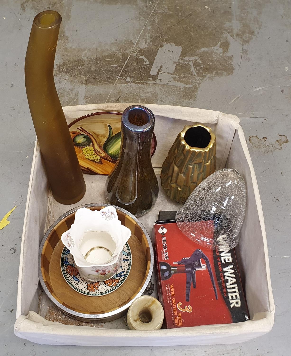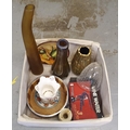Box of vintage collectables to include 3 vases, fruit bowl, decorative plate etc (Qty)