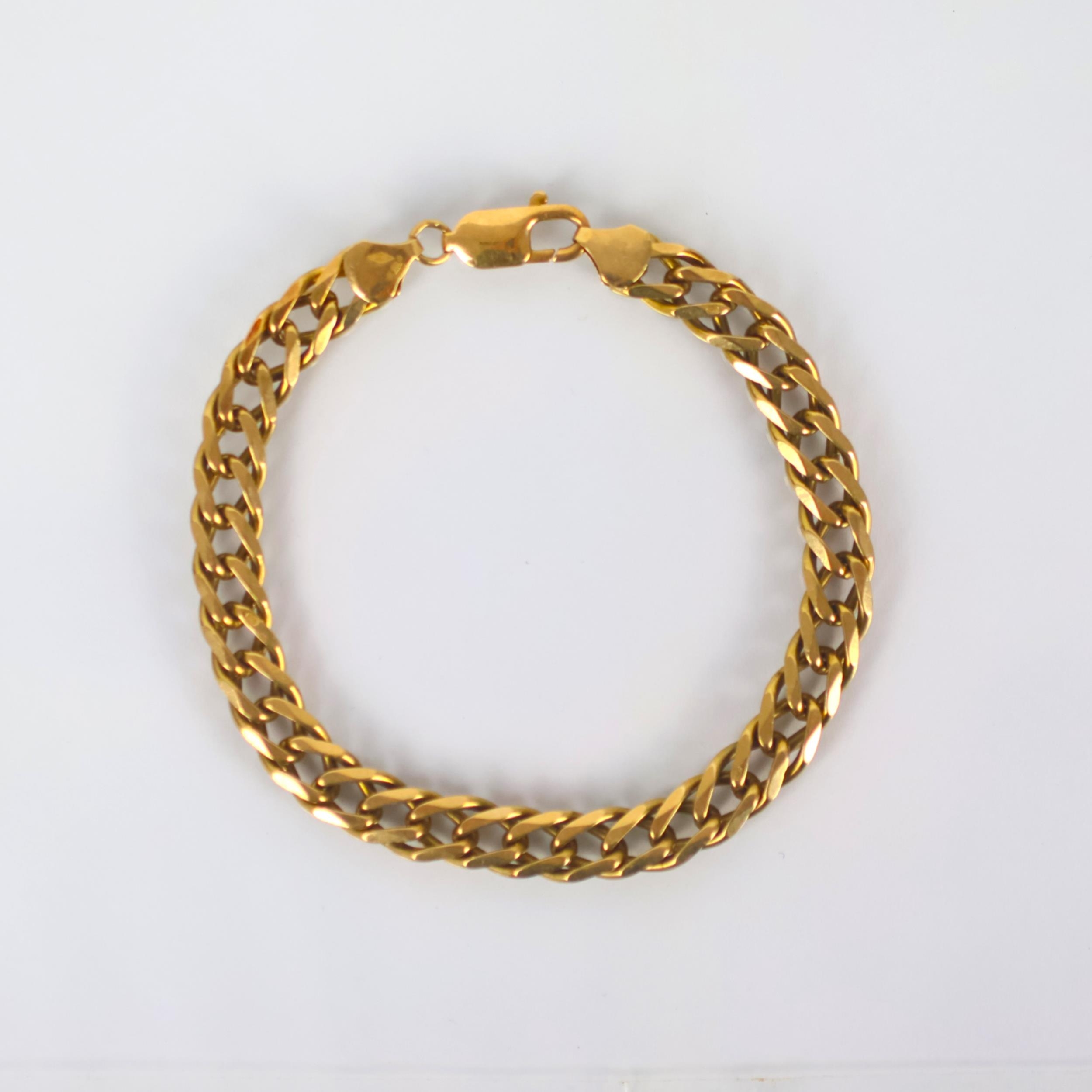 A late 20th century 9ct gold bracelet, the curb link chain with lobster fastener stamped for 1992 with London import marks, 21cm long, 21gms