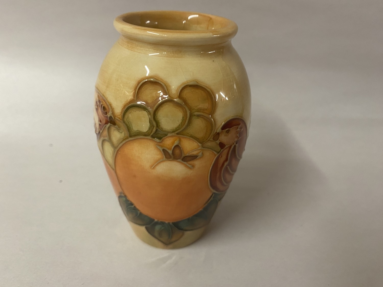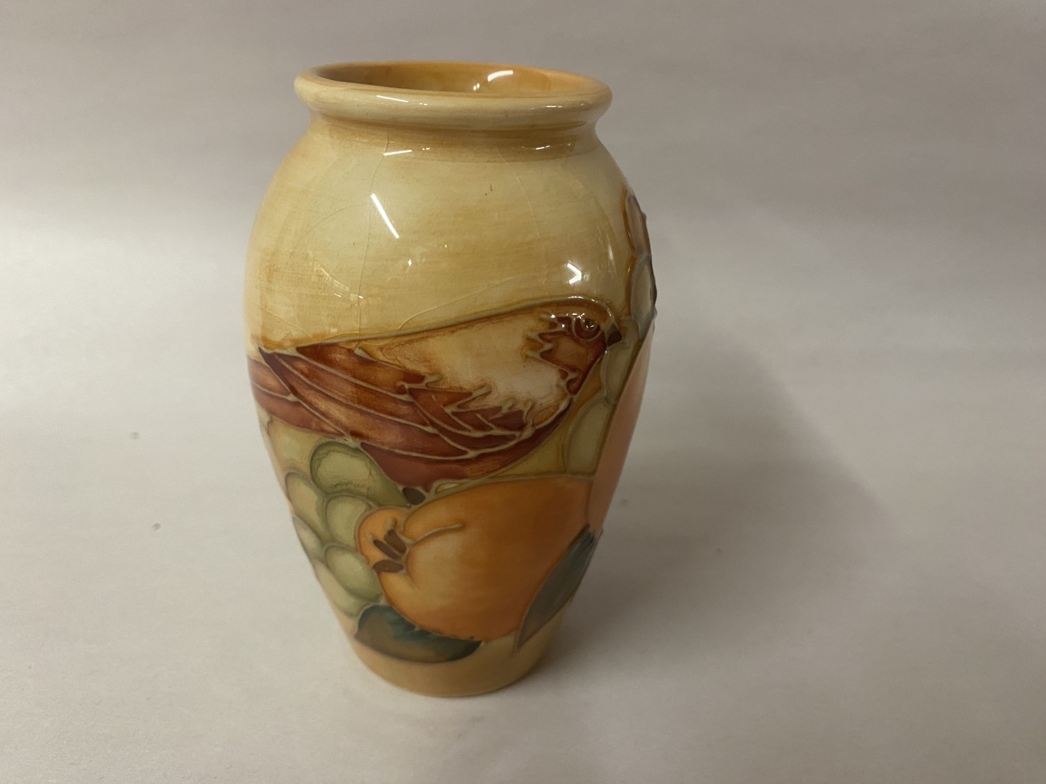Moorcroft Finches Vase by Sally Tuffin in Ochre, 4.5"