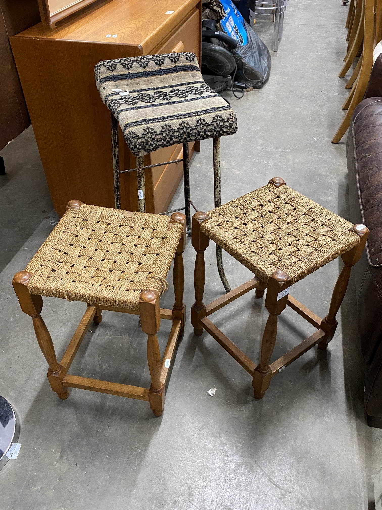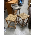 2 1960's rush seated stools 48H 30W 30D & a Victorian organ stool