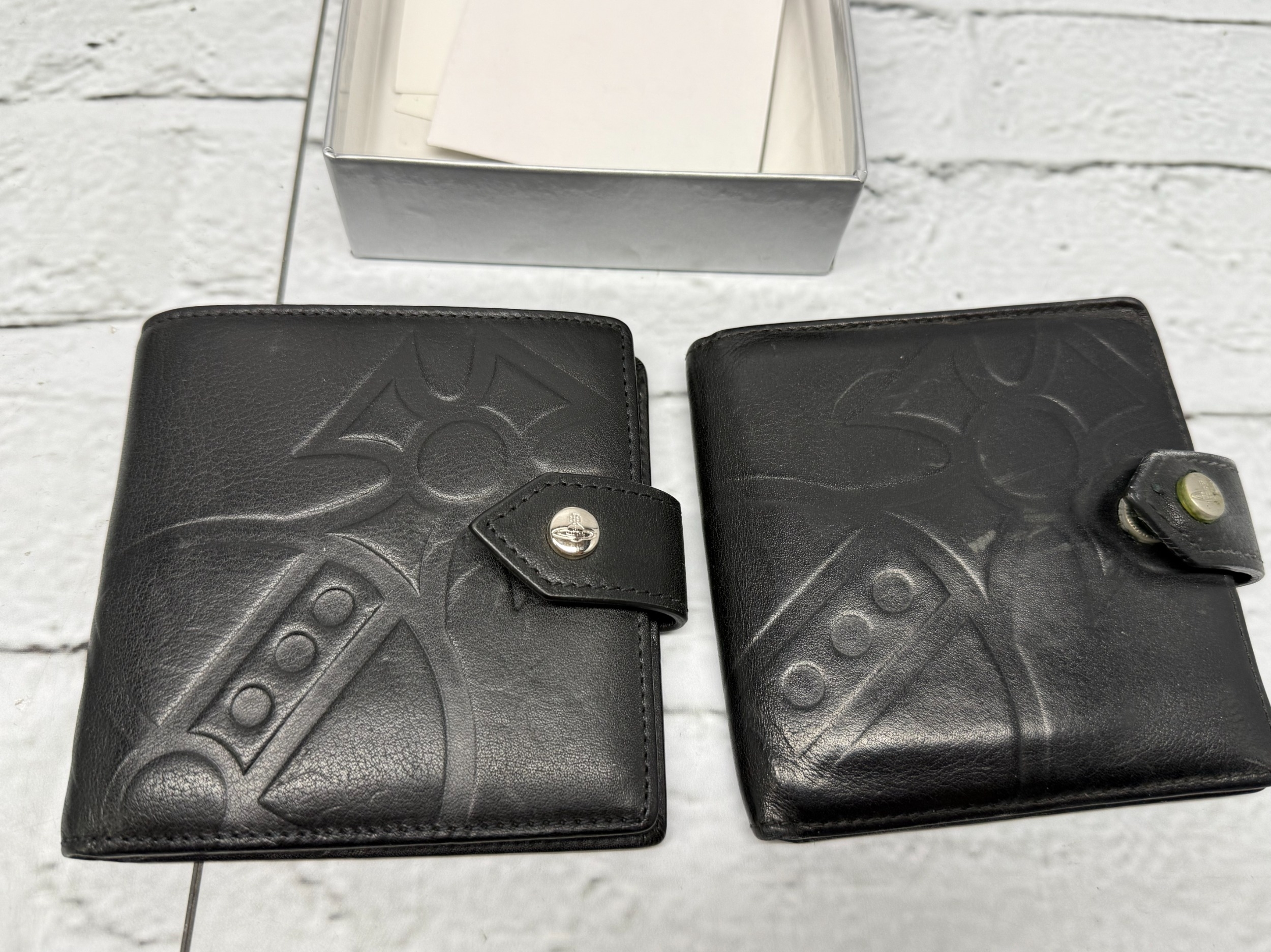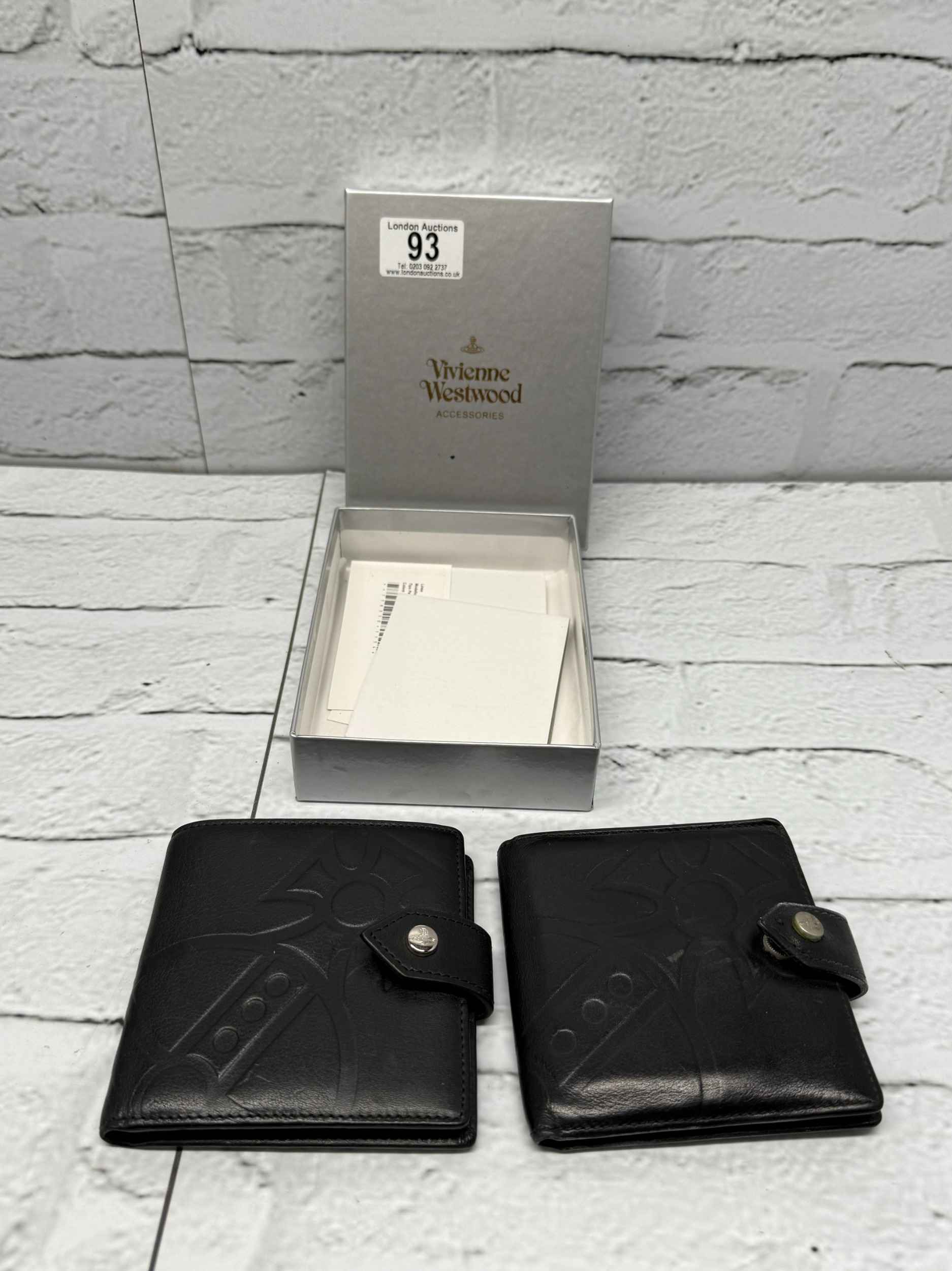 Two Gents Leather Vivienne Westwood Wallets including original box and paperwork