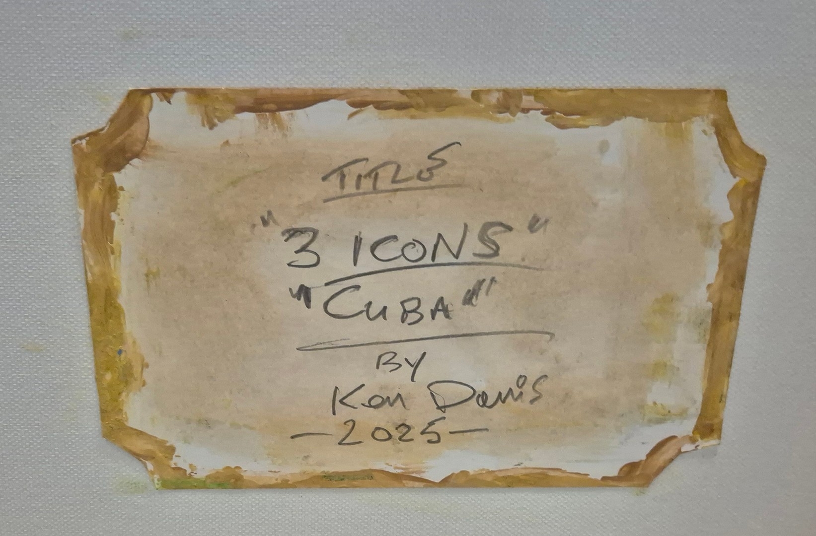 KEN DAVIS. 3 ICONS, CUBA. oil on canvas, 102cm x 122cm, framed.