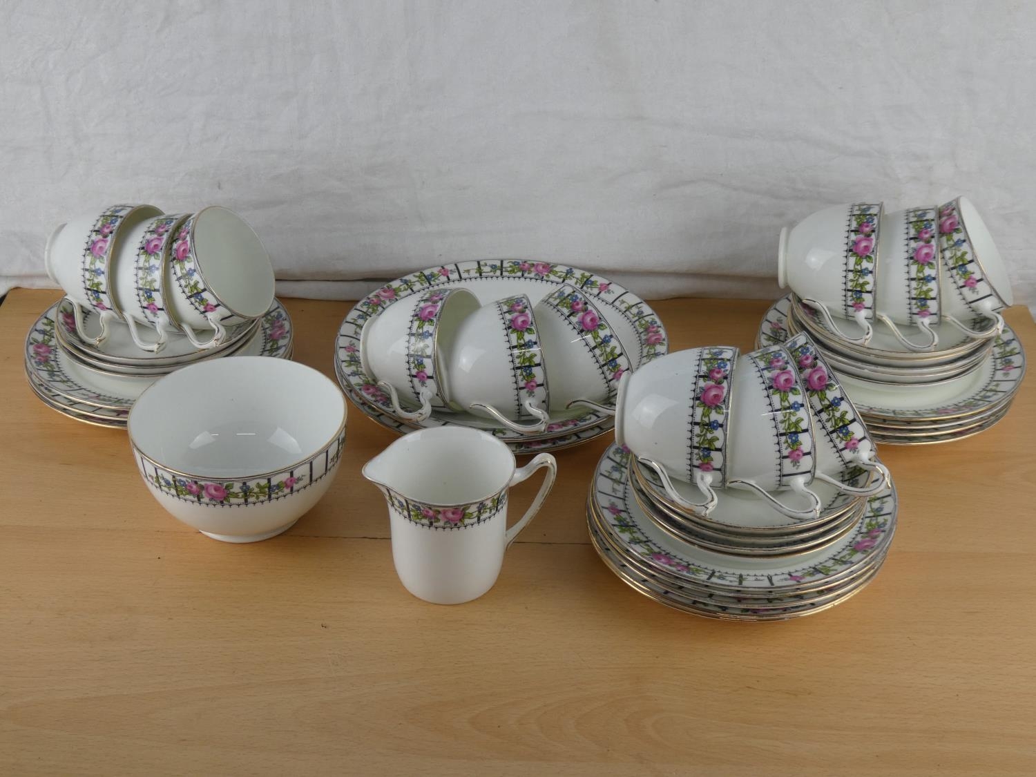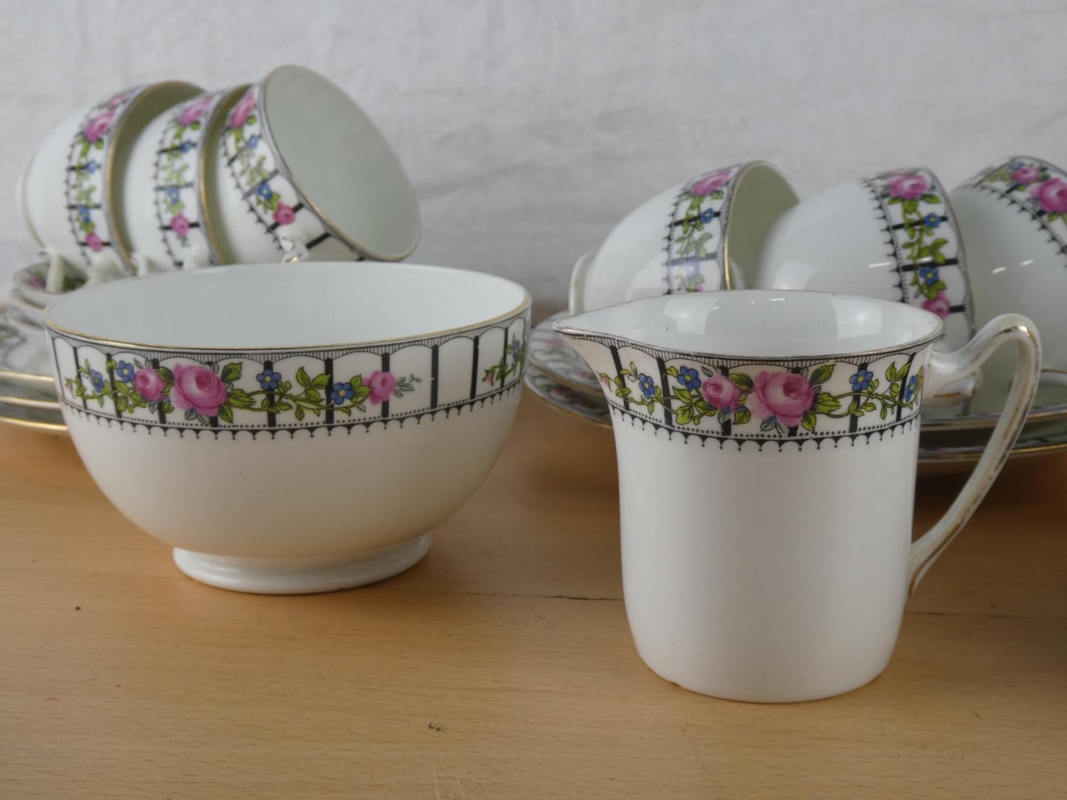 An antique Trellis Rose tea set.
