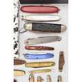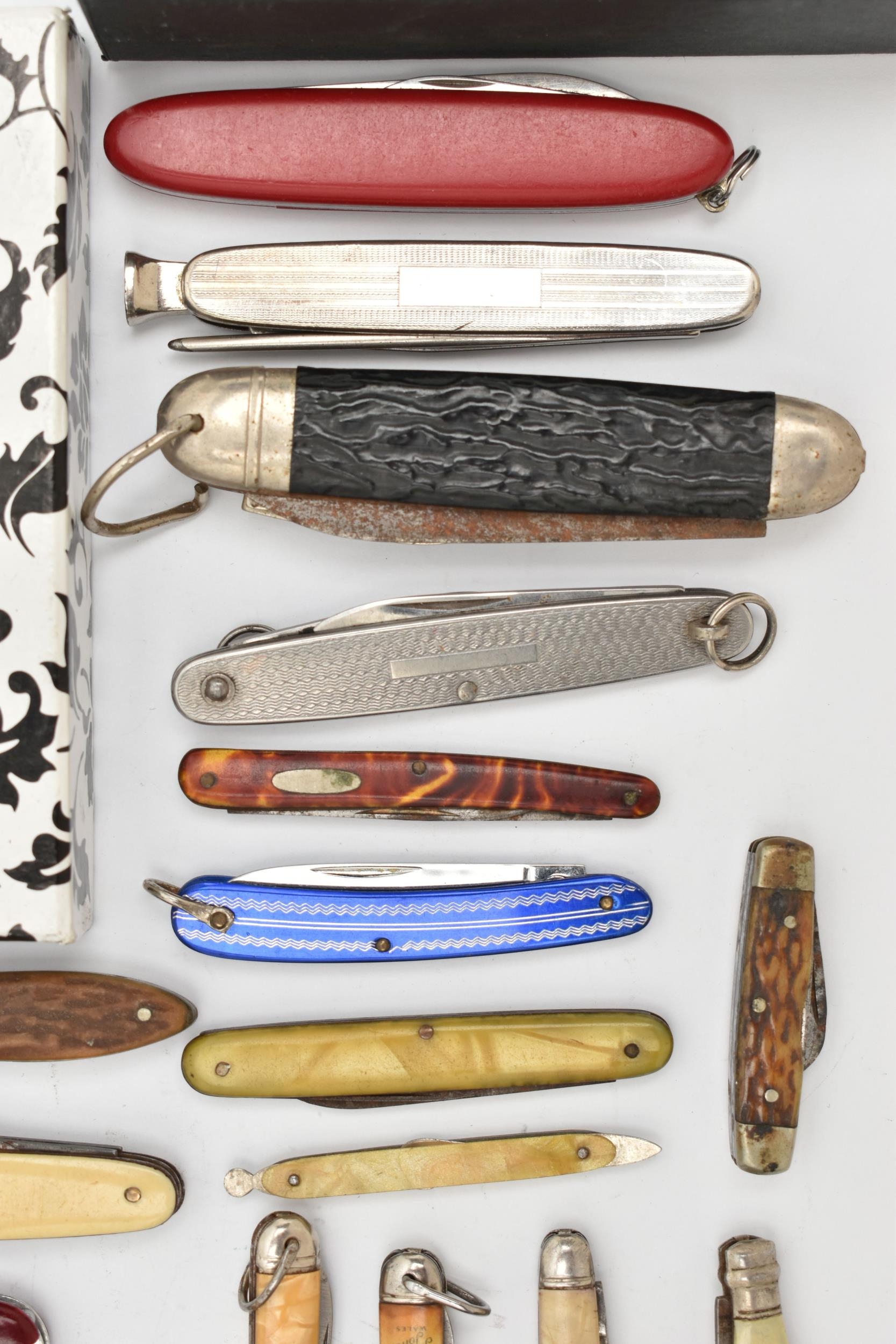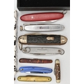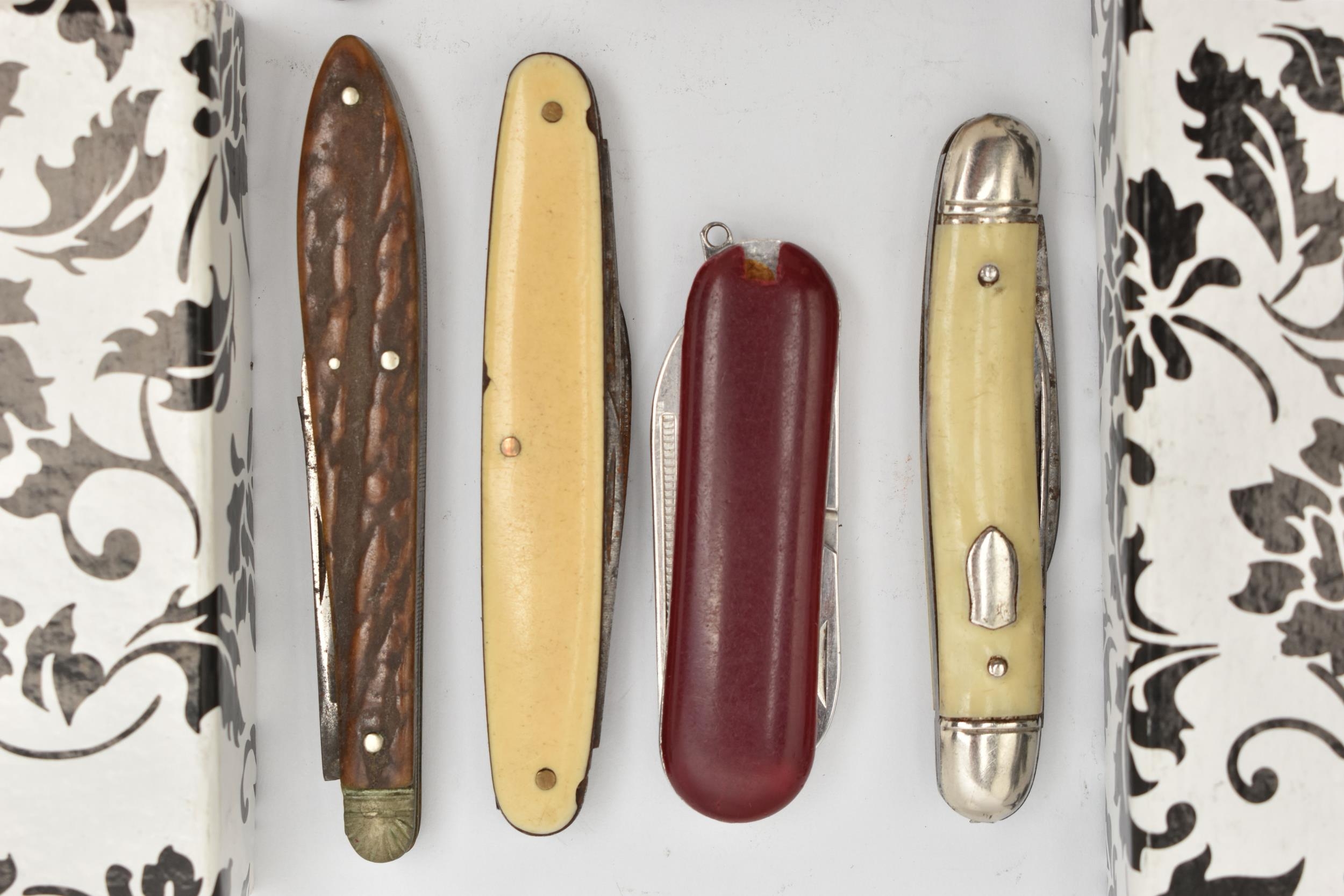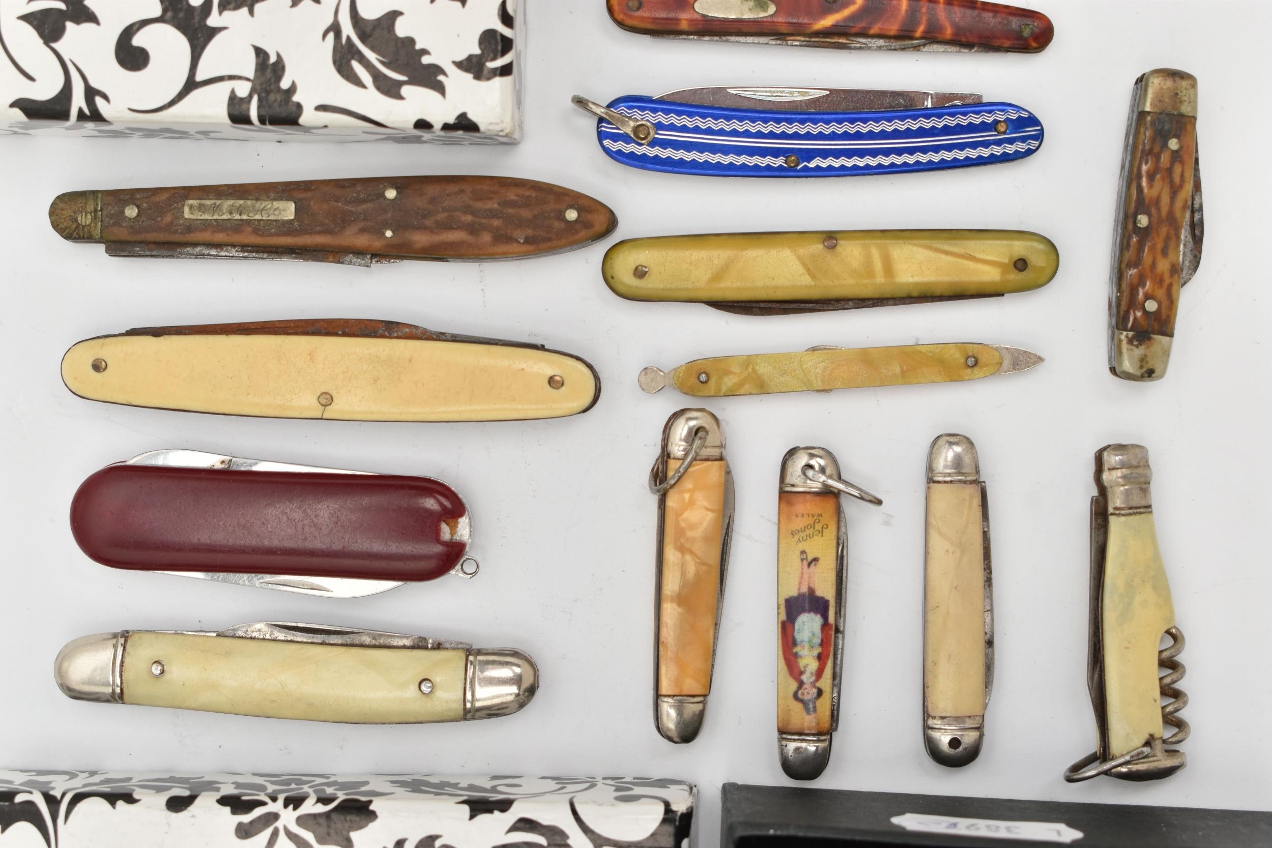 AN ASSORTMENT OF POCKET KNIVES, seventeen pocket knives, including a 'Victorinox' pocket knife (condition report: used conditions, general light wear)