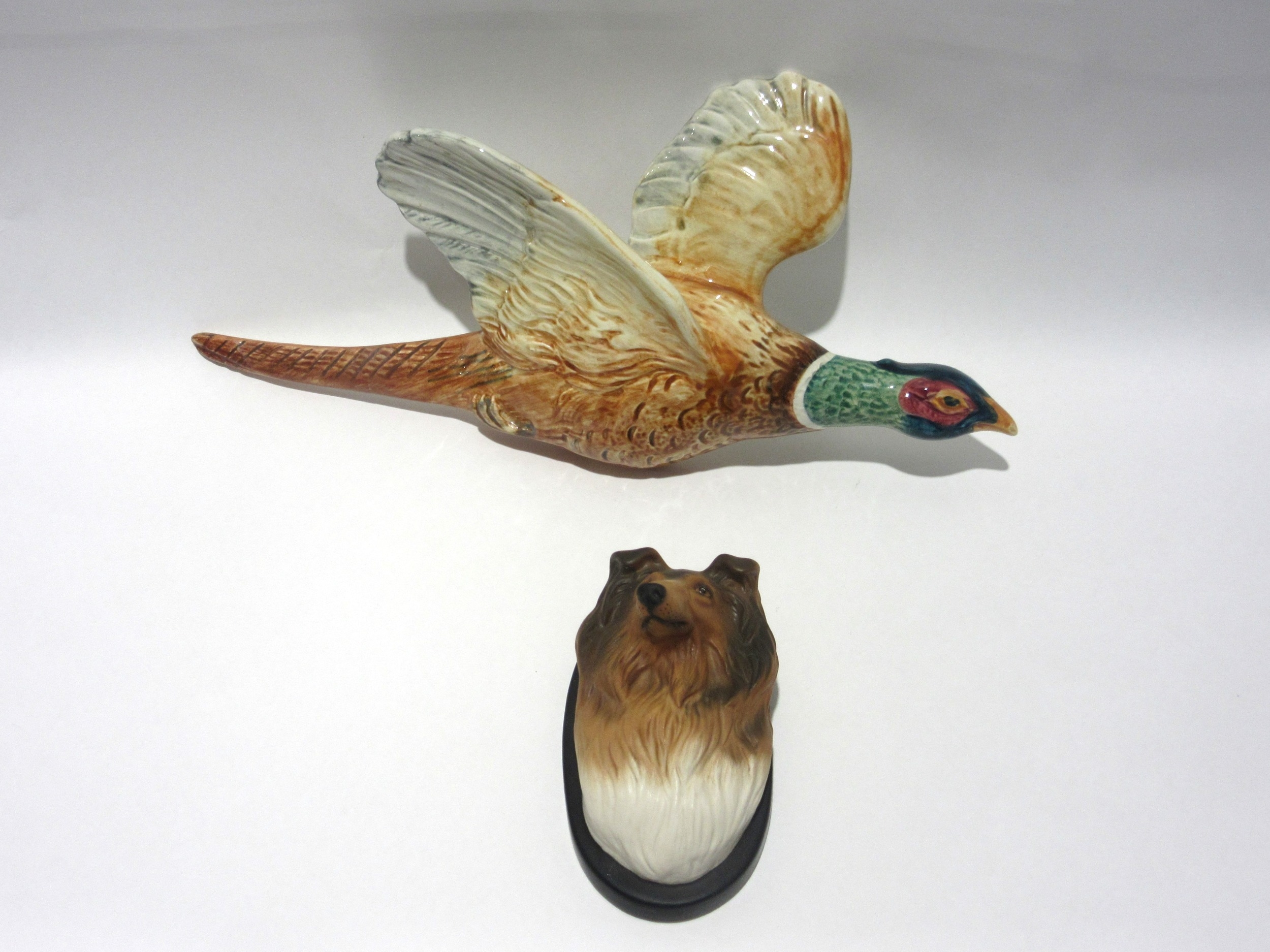 A Beswick Pheasant wall plaque in gloss, model no. 661/1 (tail restored) together with a Beswick Collie wall plaque, model no 2929