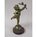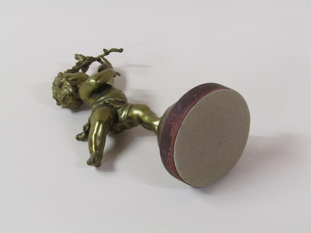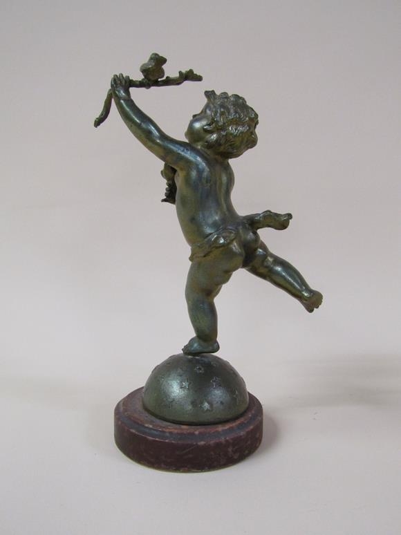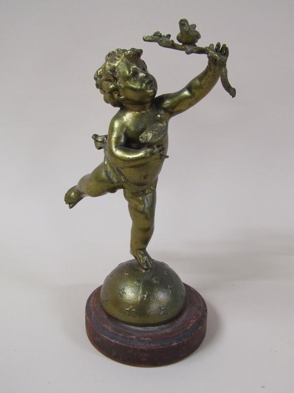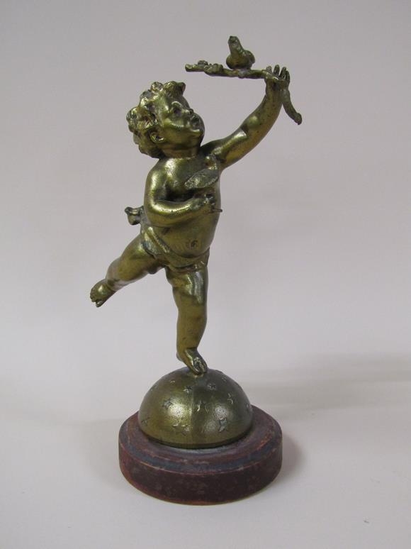 A 19c gilt metal figure of a cherub holding two finches, 28cm h.