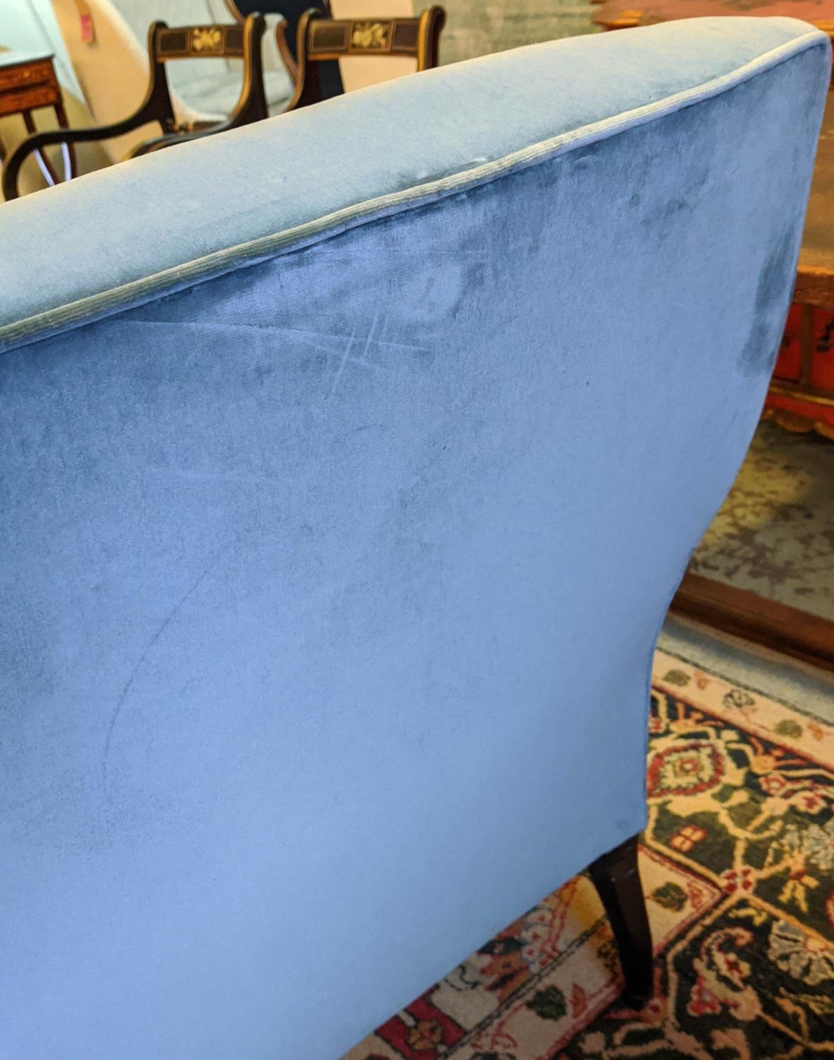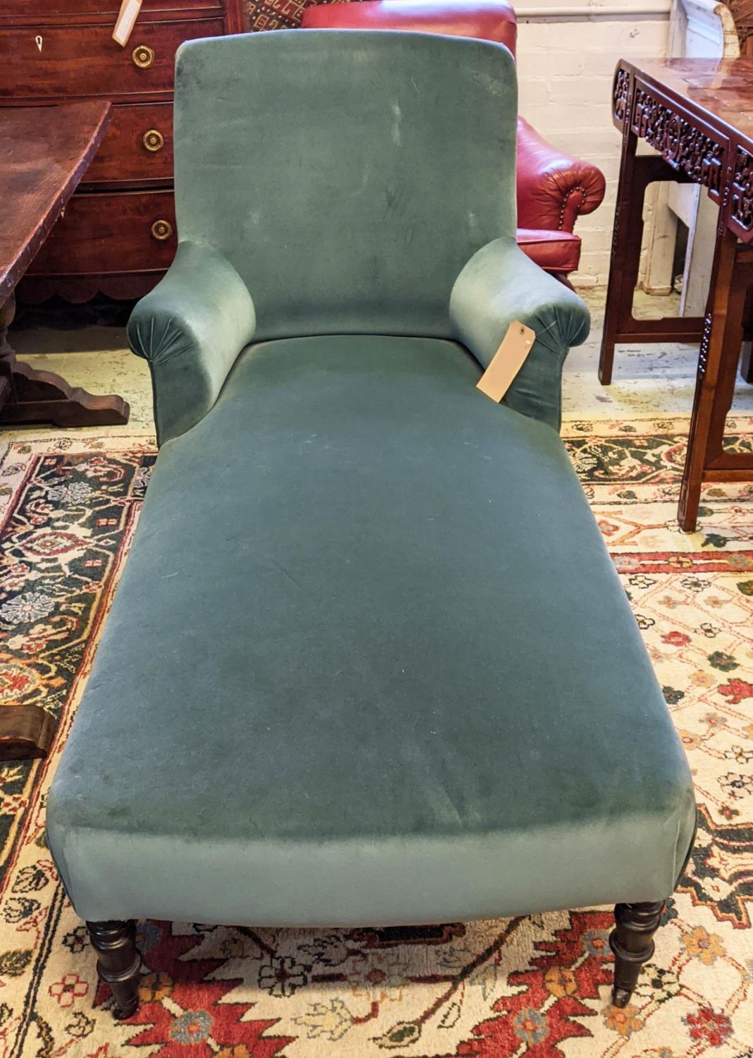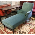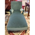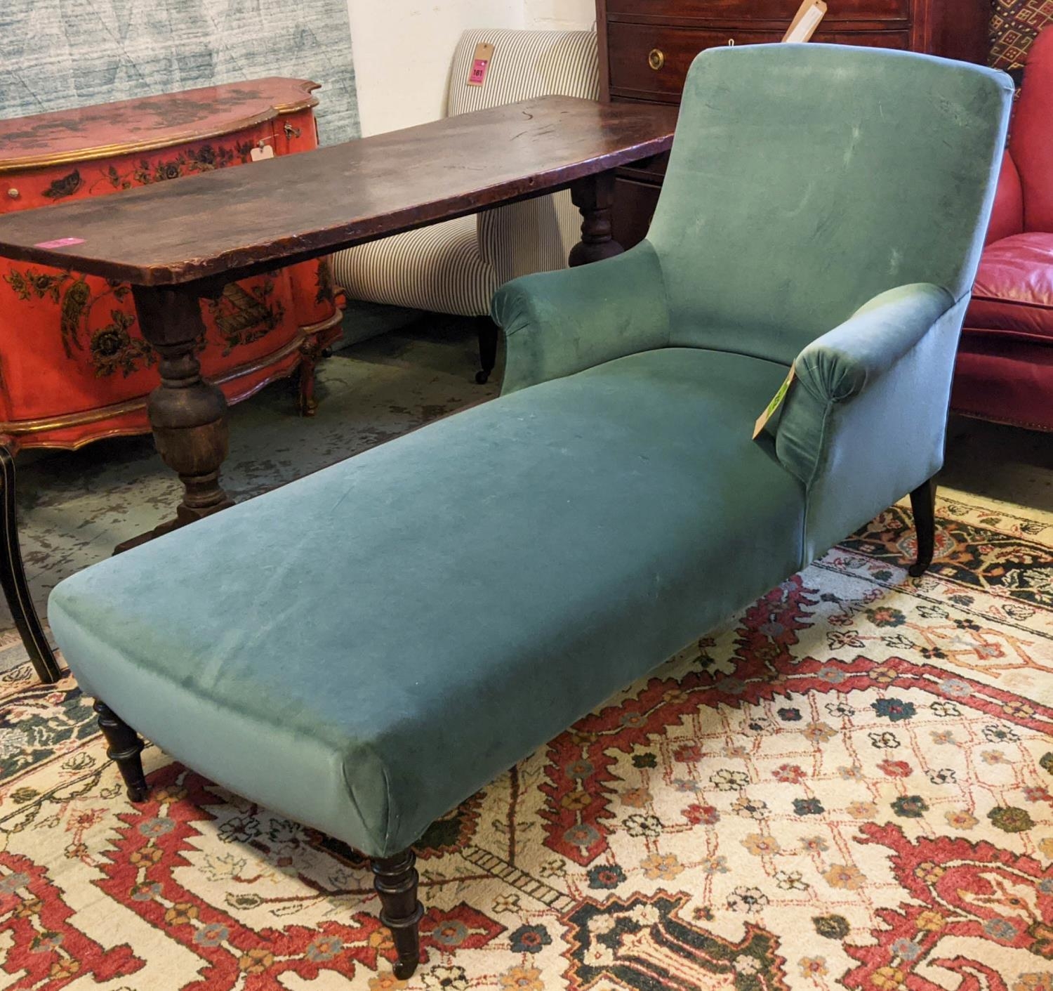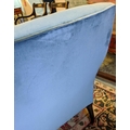 DAYBED, 160cm L x 95cm H Napoleon III with blue velvet upholstery on ebonised supports with castors.