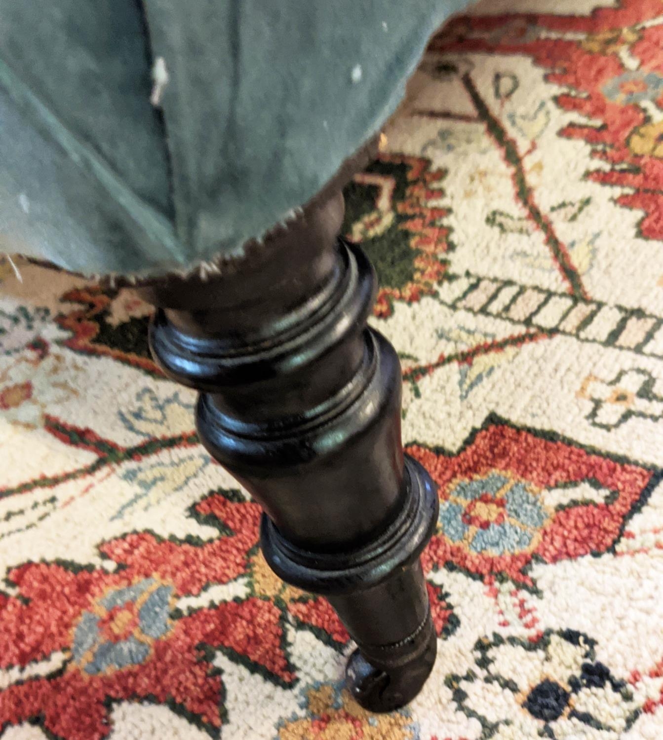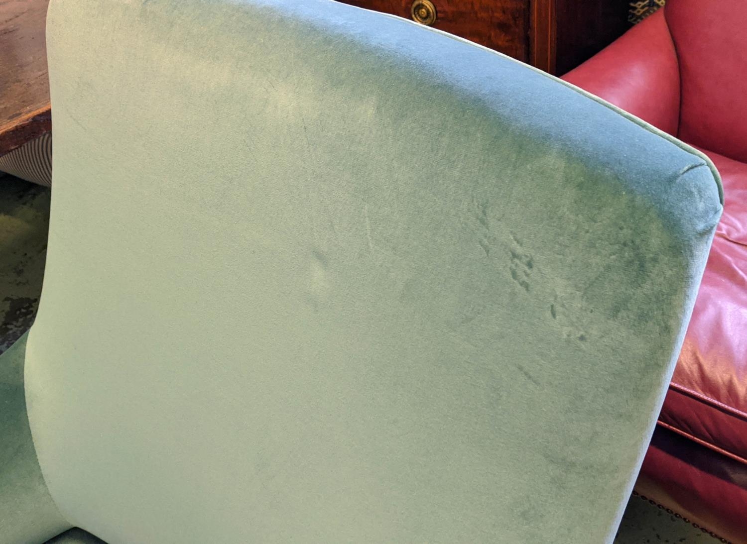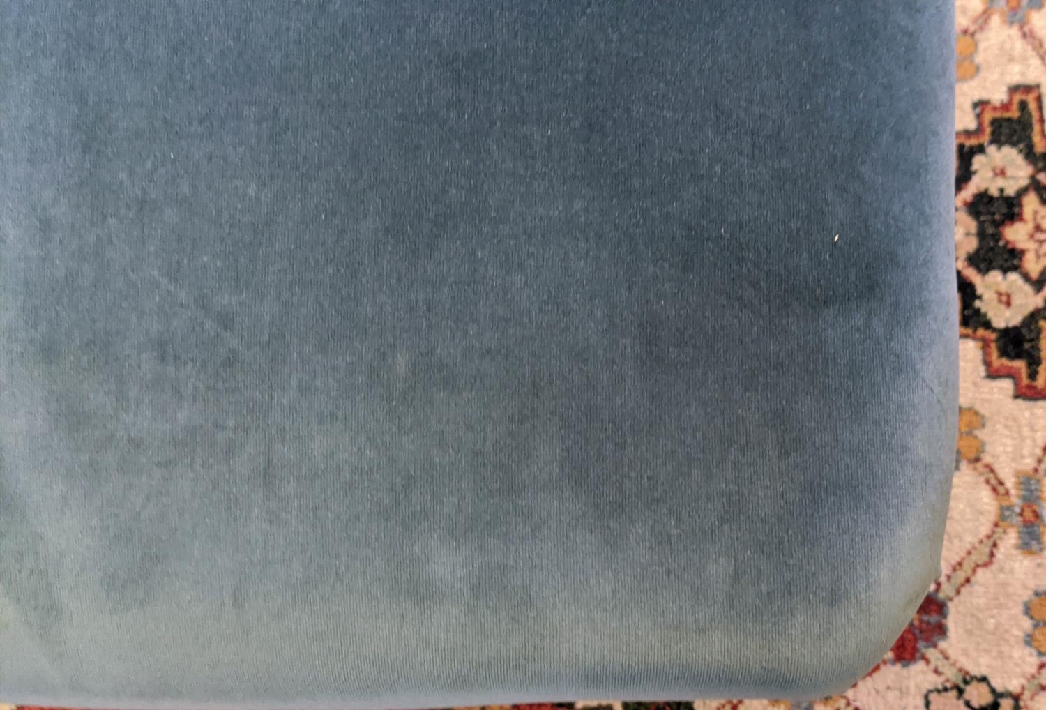 DAYBED, 160cm L x 95cm H Napoleon III with blue velvet upholstery on ebonised supports with castors.